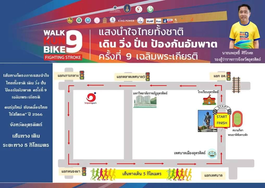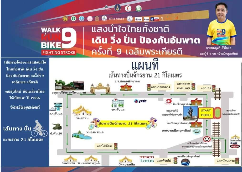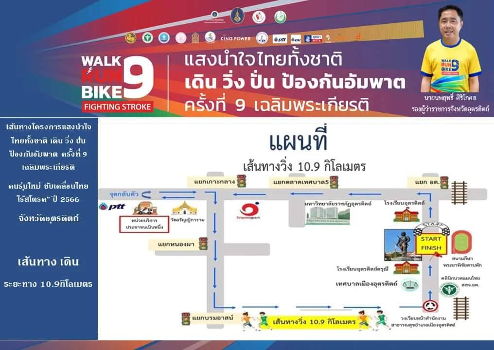 จังหวัดอุตรดิตถ์ ขอเชิญชวน คนไทยทุกคนเข้าร่วม กิจกรรม WALK RUN BIKE 9 “แสงนำใจ ไทยทั้งชาติ เดิน – วิ่ง ปั่น ป้องกันอัมพาต ครั้งที่ 9 เฉลิมพระเกียรติ”