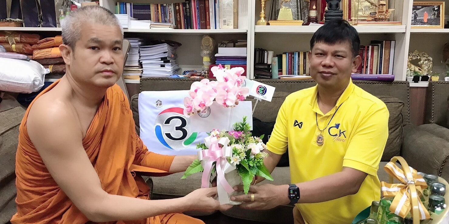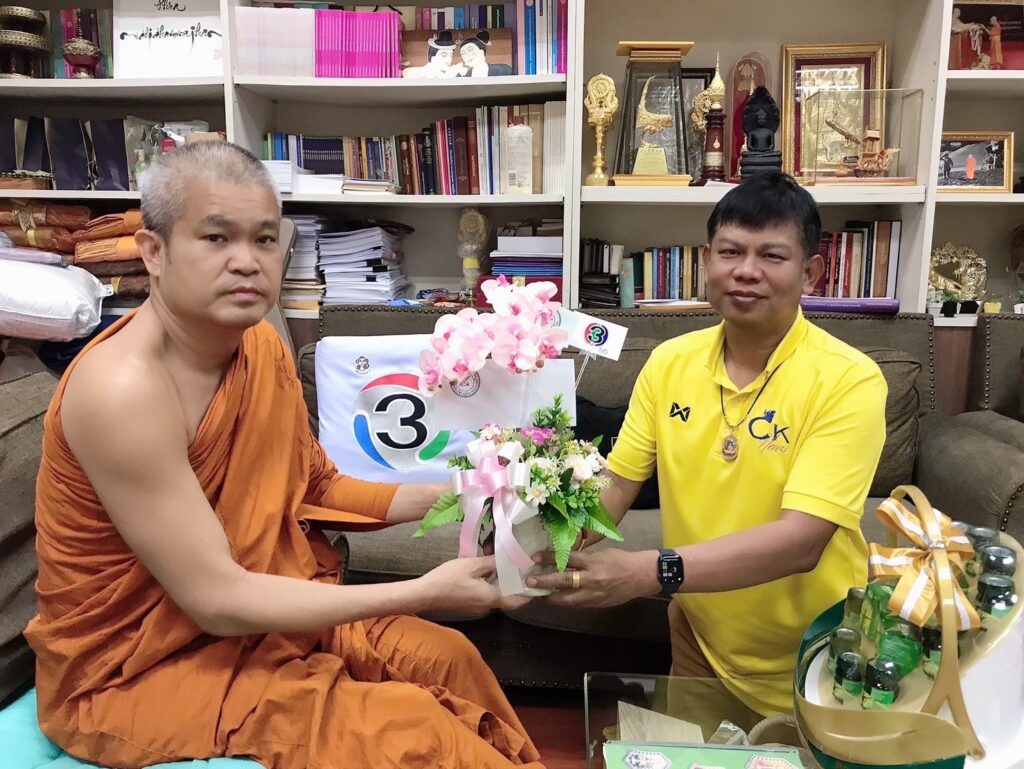 ดร.ชัชวาลย์ แก้วกระจาย นายกสมาคมเหยี่ยวข่าวภูมิภาคประเทศไทย นำแจกันดอกไม้พร้อมกระเช้าแบรนด์ เข้ามุทิตาสักการะพระราชวัชรสารบัณฑิต รศ.ดร.รองอธิการ ฝ่ายวางแผนและพัฒนา มจร.เนื่องในวันคล้ายวันเกิด54ปี ที่ห้องทำงานสำนักงานอธิบดี มหาวิทยาลัยมหาจุฬาลงกรณราชวิทยาลัย ตำบลลำไทร อำเภอวังน้อย จังหวัดพระนครศรีอยุธยา