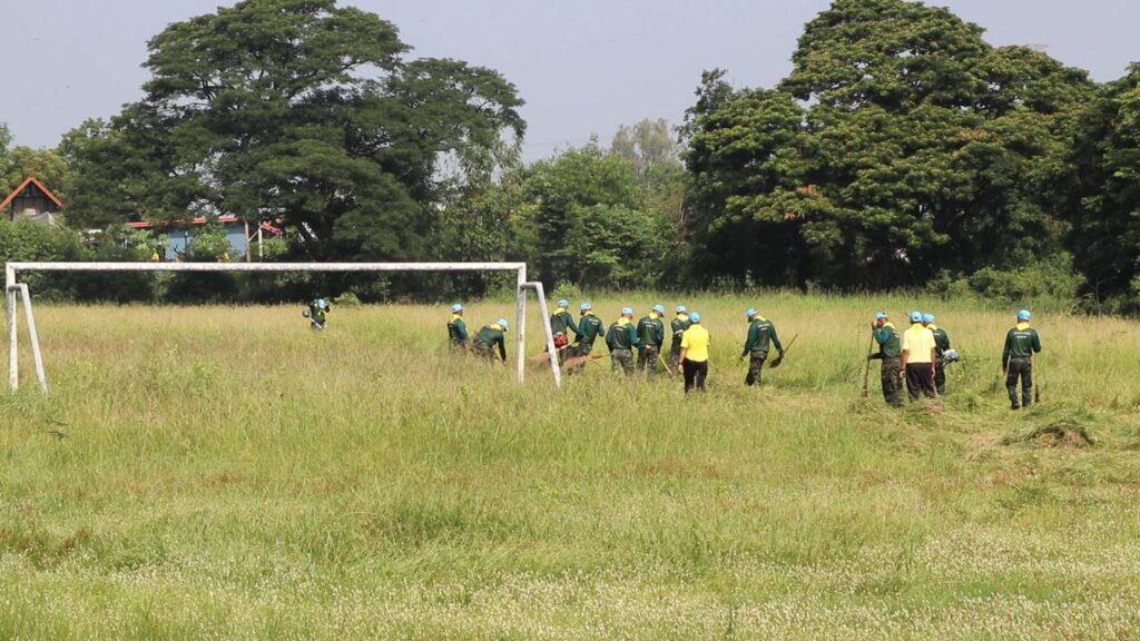 นางสาวกษวรรณ เพ็ชร์ดำ ผู้อำนวยการโรงเรียนสิงหพาหุ ประสานมิตรอุปถัมภ์ได้รับผลกระทบจากการเกิดอุทกภัยปีที่แล้วทำให้โรงเรียนได้รับความเสียหายบริเวณด้านหลังโรงเรียน จึงขอรับการสนับสนุนกำลังพลทหารจากพลทหารปืนใหญ่ ค่ายสิริกิติ์ จำนวน 20 นาย ช่วยปรับภูมิทัศน์และความสวยงามและความปลอดภัยของนักเรียนก่อนเปิดเทอม พลตรีวรการ ฮุ่นตระกูล ผู้บัญชาการกองพลทหารปืนใหญ่ ค่ายสิริกิติ์ จังหวัดลพบุรี ได้ส่งกำลังทหารจิตอาสา จำนวน 20 นาย กองพันทหารปืนใหญ่ที่ 711 กรมทหารปืนใหญ่ที่ 71 ระหว่างวันที่ 18 ถึงวันที่ 19 ตุลาคม 2566 โดยนำอุปกรณ์มาตัดหญ้าสนามฟุตบอลโรงเรียนบนพื้นที่ 20 ไร่ พร้อมเก็บขยะทำความสะอาดพื้นที่เคยถูกน้ำท่วมขัง และทาสีอาคารเรียนให้สวยงาม พร้อมเปิดเทอมภาคเรียนที่ 2 นอกจากนี้ทางโรงเรียนยังได้ขอความอนุเคราะห์จากรมทรัพยากรธรรมชาติและสิ่งแวดล้อม กับองค์การบริหารส่วนตำบลจักรสีห์ นำดินมาถมในบริเวณโรงเรียนที่มีพื้นที่ต่ำเพื่อป้องกันน้ำท่วมอีกด้วย