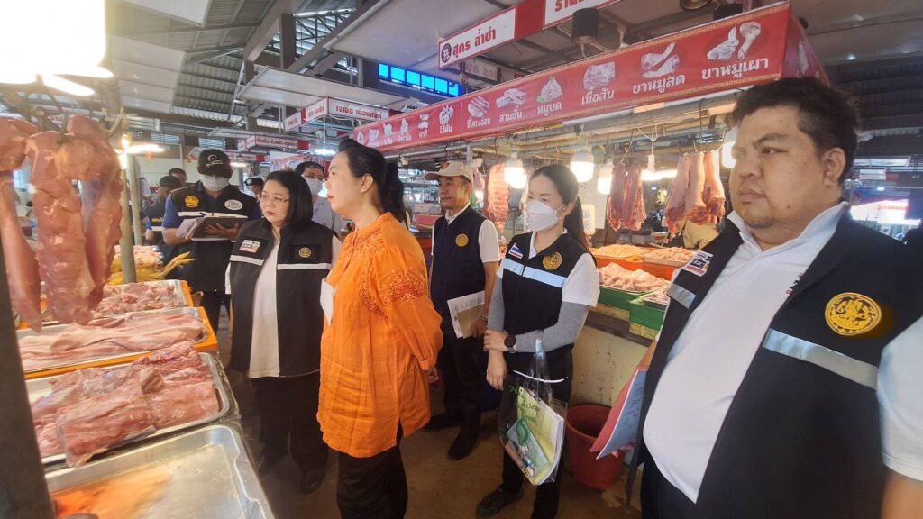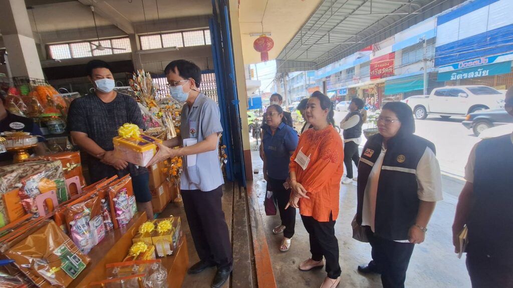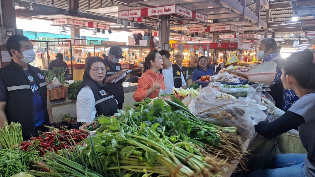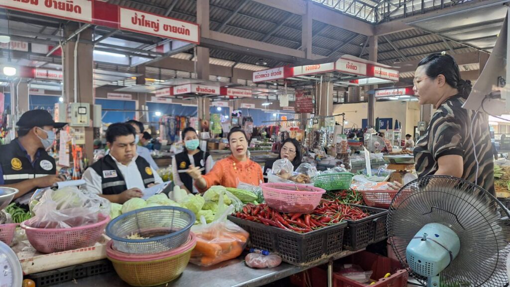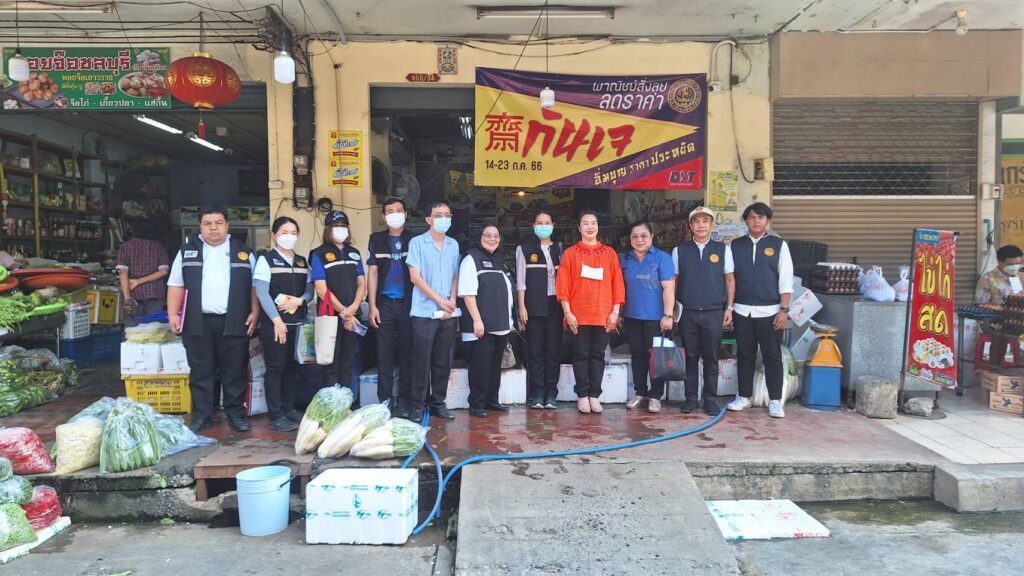 วันที่ 18 ตุลาคม 2566 นางสาวจรรยวรรธน์ อ้วนตา พาณิชย์จังหวัดสิงห์บุรี พร้อมด้วยเจ้าหน้าที่กลุ่มกำกับและพัฒนาเศรษฐกิจการค้า ร่วมกับสำนักงานคณะกรรมการคุ้มครองผู้บริโภคประจำจังหวัดสิงห์บุรี ผู้บังคับการตำรวจภูธรจังหวัดสิงห์บุรี นายแพทย์สาธารณสุขจังหวัดสิงห์บุรี โยธาธิการและผังเมืองจังหวัดสิงห์บุรี เกษตรจังหวัดสิงห์บุรี และอุตสาหกรรมจังหวัดสิงห์บุรี ลงพื้นที่ติดตามภาวะราคาสินค้าอุปโภคบริโภคสำคัญ ในช่วงเทศกาลกินเจ 2566 ณ ตลาดสดเทศบาลเมืองสิงห์บุรี ต.บางพุทรา อ.เมืองสิงห์บุรี จากการตรวจสอบพบว่า ราคาสุกรมีชีวิตหน้าฟาร์ม เนื้อไก่ ไข่ไก่ สินค้าประมง และน้ำมันพืช ราคายังทรงตัวจากสัปดาห์ก่อน ผักสดบางชนิดปรับราคาสูงขึ้นจากสัปดาห์ก่อน 5-10 บาท/กก. เนื่องจากในช่วงนี้ผลผลิตออกสู่ตลาดน้อย ด้านปริมาณสินค้ามีเพียงพอต่อความต้องการของผู้บริโภค พร้อมกันนี้ได้ออกตรวจสอบการจำหน่ายชุดสังฆภัณฑ์ ในช่วงเทศกาลออกพรรษา ปี 2566 โดยให้คำแนะนำแก่ผู้ประกอบการให้มีการปฏิบัติอย่างถูกต้อง และปิดป้ายแสดงราคาให้ชัดเจน ซึ่งผู้ประกอบการได้ให้ความร่วมมือเป็นอย่างดี