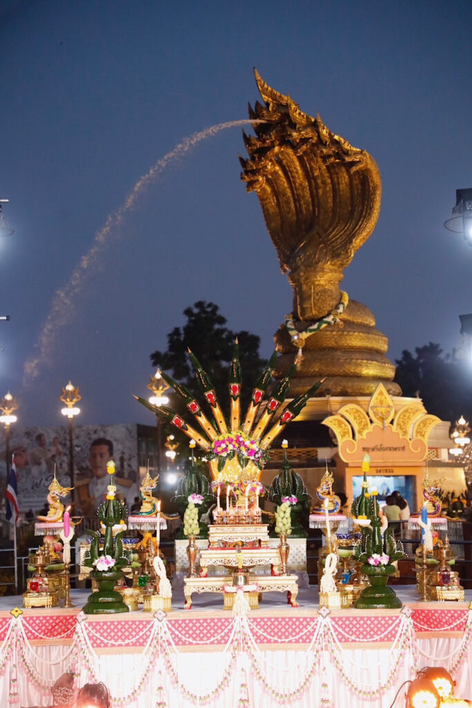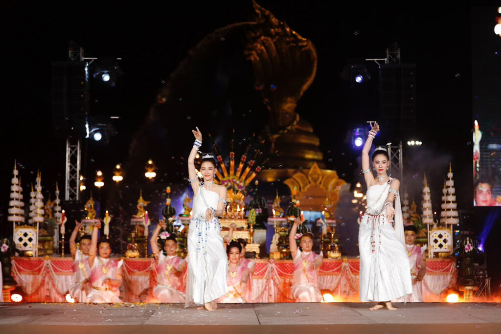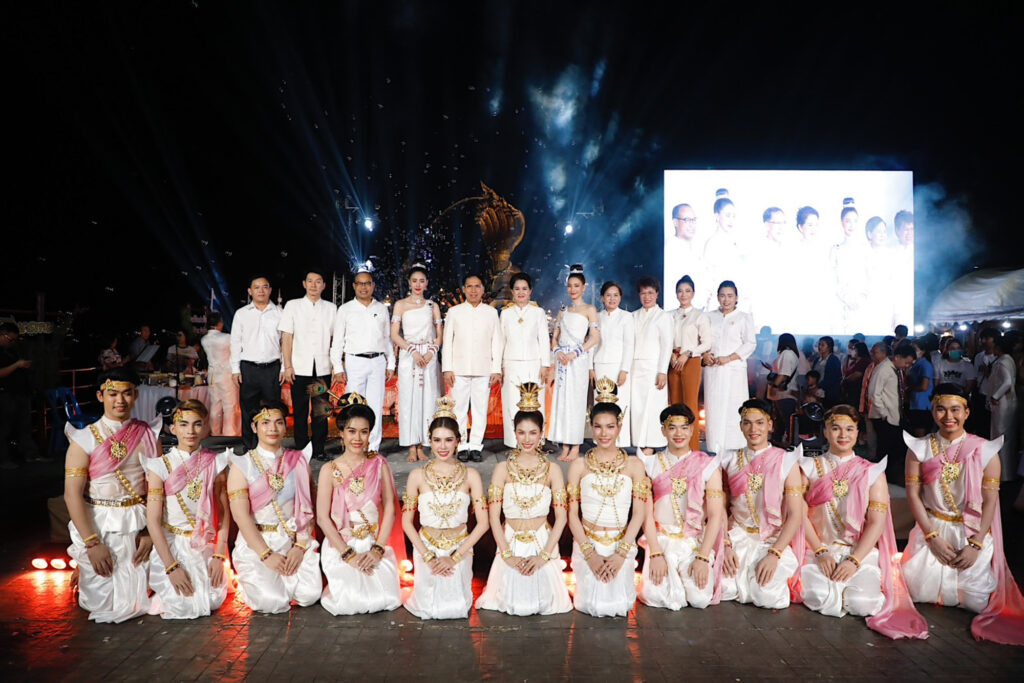 อลังการ ตระการตาไปทั้ง ลานพญาศรีสัตตนาคราช จ.นครพนม เมื่อ ช่องวัน31 ร่วมกับ การท่องเที่ยวแห่งประเทศไทย สำนักงานนครพนม จังหวัดนครพนม และ เทศบาลเมืองนครพนม จัดงาน “รำบวงสรวงพญาศรีสัตตนาคราช” ก่อนเริ่มงานประเพณีไหลเรือไฟ จังหวัดนครพนม ประจำปี 2566 โดยงานนี้ เป็นการสร้างปรากฎการณ์ ยกขบวนนางรำหลากชุด หลายขบวนฟ้อน เข้าร่วมพิธี เบิกฤกษ์ความเป็นสิริมงคล ด้วยการเปิดพระแม่ธรณี พร้อมขบวนร่ายรำชุดต่างๆ แต่ไฮไลท์ความงดงาม ที่สายตาทุกคู่ต่างจับจ้อง อยู่ที่ สองนักแสดงนำ จากละครฟอร์มใหญ่ “พนมนาคา” นำโดย “กรีน-อัษฎาพร สิริวัฒน์ธนกุล” ผู้รับบท “อนัญชลี” (ผู้มีฤกษ์เกิดปีงูใหญ่ เหมาะสมกับการเป็นคู่ครองของพญานาค) และ “ญิ๋งญิ๋ง-ศรุชา เพชรโรจน์” ผู้รับบท “โสวันนี” (นาคบริวาร) แต่งกายด้วยชุดรำสุดสง่างาม เรียบง่าย แต่ออร่าความสวย สุดเจิดจรัส นำขบวนร่ายรำบวงสรวง ถวาย “องค์ปู่ศรีสัตตนาคราช” โดยใช้เพลงรำจาก ละคร “พนมนาคา” ทำให้เพิ่มกลิ่นอายความมีมนต์ขลังอย่างลงตัว ทั้งนี้ ยังมีขบวนรำถวายของจังหวัดนครพนม เข้าร่วมฟ้อนศรีโคตรบูร และฟ้อนออนซอนนครพนม ซึ่งเป็นประเพณีการฟ้อนที่อ่อนช้อย งดงาม ตามด้วย พิธีขอขมากรรมที่เข้มขลังไปด้วยแรงศรัทธา และปิดท้ายงาน ด้วยภาพสุดประทับใจ กิจกรรมการบินโดรนแปลอักษร ในงานประเพณีไหลเรือไฟ จังหวัดนครพนม เรียกเสียงฮือฮา และแสงแฟลชได้ตลอดการแสดง จากนั้น แฟนละครจำนวนมาก ปักหลักร่วมชมละคร “พนมนาคา” กลางลานพญาศรีสัตตนาคราช ท่ามกลางบรรยากาศที่เต็มไปด้วยมนต์เสน่ห์แห่งความรัก ความศรัทธา