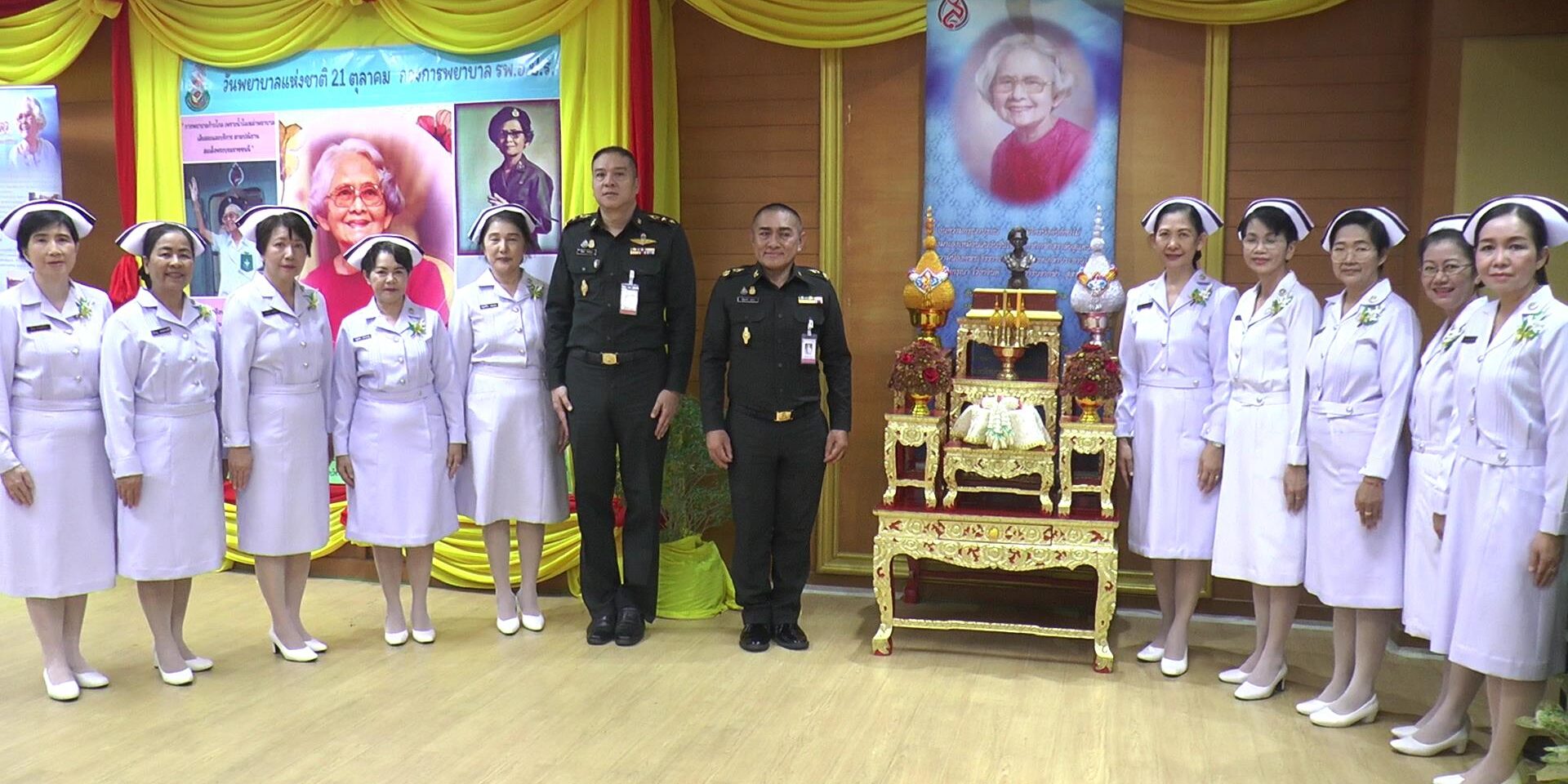 พล.ต. ณัฐนนท์ ภุคุกะ ผู้อำนวยการโรงพยาบาลอานันทมหิดล กรมแพทย์ทหารบก เป็นประธานเปิดกิจกรรม เนื่องในวันพยาบาลแห่งชาติ ณ ลานเอนกประสงค์ ชั้น 1 อาคารรักษาพยาบาล 6 ชั้น โรงพยาบาลอานันทมหิดล ต.เขาสามยอด อ.เมือง จ.ลพบุรี เพื่อเป็นการน้อมรำลึกถึงพระมหากรุณาธิคุณของสมเด็จพระศรีนครินทราบรมราชชนนี ที่พระองค์ทรงอุทิศพระองค์ทุ่มเท ให้แก่ แพทย์ พยาบาล และงานด้านการสาธารณสุข เพื่อช่วยเหลือปวงชนชาวไทย ให้เข้าถึงในด้านการรักษาพยาบาล ที่มีคุณภาพ และตลอดพระชนม์ชีพของพระองค์ทรงปฏิบัติพระราชภารกิจในการพัฒนาสุขภาพอนามัยและคุณภาพชีวิตของประชาชน เปี่ยมล้นด้วยพระเมตตา และด้วยพระวิริยะอุตสาหะ นำสิริสุขแก่ปวงชน ทุกก้าวพระบาทที่เสด็จไปถึง สมควรเป็นแบบอย่างแก่ผู้ประกอบวิชาชีพการพยาบาล ให้ตระหนักในภารกิจของวิชาชีพแห่งตนว่า….เป็นงานบริการสุขภาพที่มีความสำคัญ และมีคุณค่าแก่สังคม โดยถือ 21 ตุลาคม ของทุกปี ซึ่งเป็นวันคล้ายวันพระราชสมภพของสมเด็จพระศรีนครินทราบรมราชชนนี เป็น “วันพยาบาลแห่งชาติ” ด้วย
