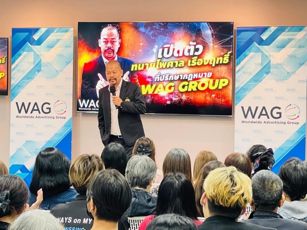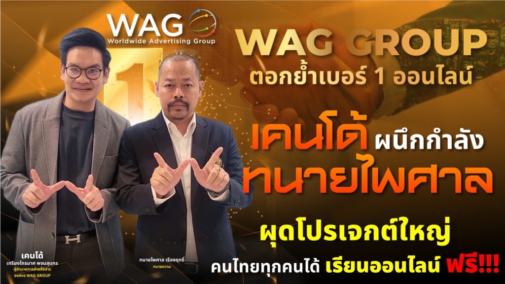 นับจากนี้ WAG GROUP ได้จับมืออย่างเป็นทางการกับทนายคนดังแห่งยุค “ทนายไพศาล เรืองฤทธิ์” ผุดโปรเจกต์ช่วยคนไทยเรียนออนไลน์ฟรีและเป็นที่ปรึกษาทางกฎหมายให้คนไทยรู้ทันกลโกงออนไลน์ พร้อมโครงการเพื่อช่วยเหลือประชาชนอีกมากมาย