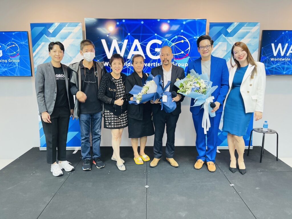 กับผู้บริหารประกอบด้วย คุณ วงศกร วงษ์โชติปิ่นทอง ผู้ก่อตั้งWAG GROUP คุณ อรรถพล ราชดารา Managing Director ผู้อำนวยการฝ่ายสื่อสารองค์กร เคนโด้ เกรียงไกรมาศ พจนสุนทร