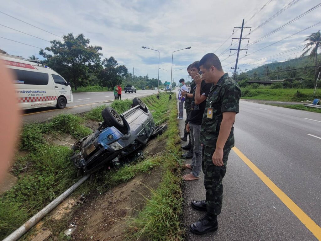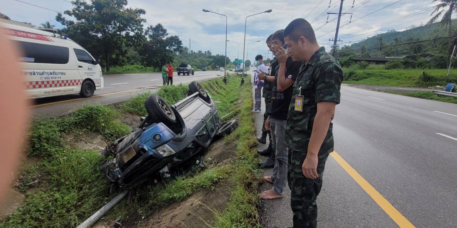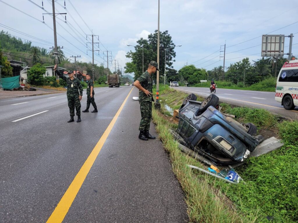 ได้มีรถยนต์ของประชาชน ยี่ห้ออีซูซุ หมายเลขทะเบียน กค ฌข 3160 กทม ประสบอุบัติเหตุ เสียหลักชนเสาไฟส่องสว่างข้างทางและพลิกคว่ำตกลงไปบริเวณร่องกลางถนน ได้รับความเสียหาย