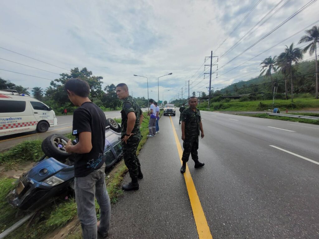โดยในขณะเกิดเหตุ พ.ท.รัชเดช สุภาสูรย์ พ.ต.พงษ์พัฒน์ อ่วมเสงี่ยม จ.ส.ท. อรรถพล เกตุบรรจง ส.อ.พันธาวุฒิ อาจหาญ ส.อ.กนกพล อรชร ส.ท.ศักดิ์รินทร์ ซิบเข กำลังพลสังกัด มณฑลทหารบกที่ 15 ขับรถยนต์ผ่านมาในที่เกิดเหตุพอดี จึงรีบเข้าไปให้การช่วยเหลือประชาชนออกมาจากรถได้อย่างปลอดภัย เบื้องต้นผู้ขับขี่รถยนต์ ไม่ได้รับบาดเจ็บ ก่อนที่จะช่วยประสานเจ้าหน้าที่ตำรวจเข้าตรวจสอบ และให้การช่วยเหลือผู้ประสบอุบัติเหตุต่อไป