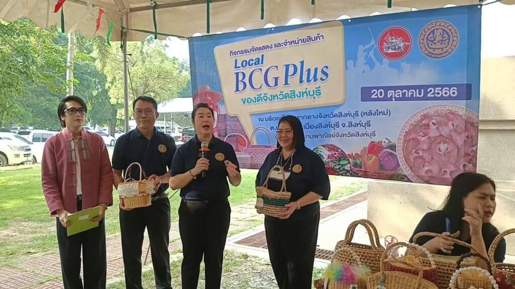 นางสาวจรรยวรรธน์ อ้วนตา พาณิชย์จังหวัดสิงห์บุรี จัดกิจกรรมจัดแสดงและจำหน่ายสินค้า LOCAL BCG ของจังหวัดสิงห์บุรี รักษ์โลก รักสิ่งแวดล้อม ณ บริเวณข้างศาลกลางจังหวัดสิงห์บุรี หลังใหม่ ส่งเสริม