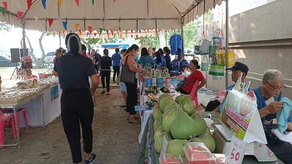ผลิตภัณฑ์ชุมชนสินค้า BCGเกษตรแปรรูป หัตถกรรมท้องถิ่น อัตลักษณ์ นวัตกรรม และผักปลอดสารพิษ เพื่อส่งเสริมช่องทางการตลาดให้ผู้ประกอบการ รณรงค์เลือกซื้อสินค้าที่เป็นมิตรกับสิ่งแวดล้อมให้ผู้ประกอบการมีรายได้สร้างความเข้มแข็งให้ชุมชน ตามนโยบายรัฐบาล