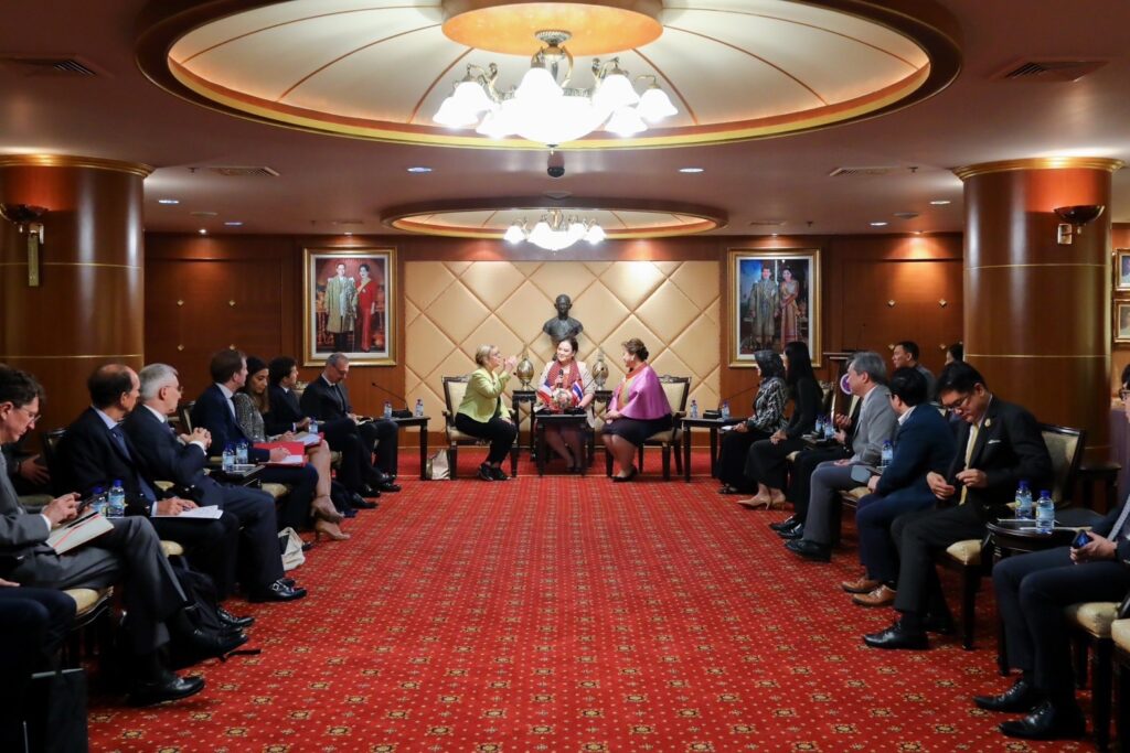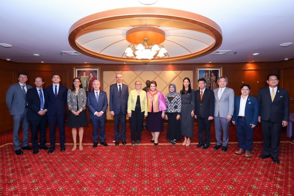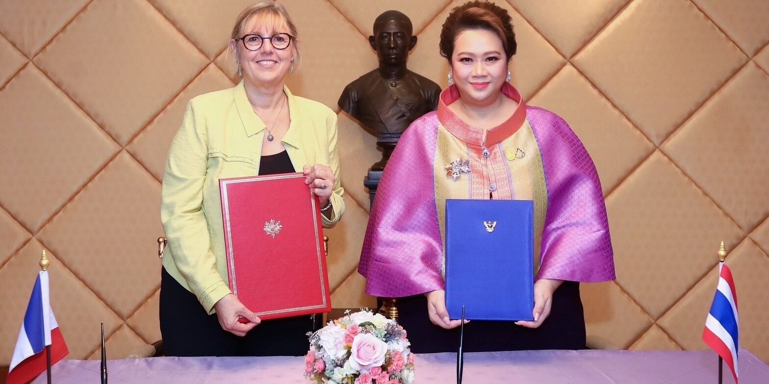 วันที่ 20 ต.ค.2566 : นางสาวศุภมาส อิศรภักดี รมว.การอุดมศึกษา วิทยาศาสตร์ วิจัยและนวัตกรรม (อว.) ให้การต้อนรับ ศ.ซีลวี เรอตาโย รมว.การอุดมศึกษาและการวิจัยแห่งสาธารณรัฐฝรั่งเศส พร้อมหารือความร่วมมือทวิภาคีด้านการอุดมศึกษา การวิจัยและนวัตกรรม และร่วมลงนาม “แถลงการณ์แสดงเจตจำนงระหว่างกระทรวงการอุดมศึกษา วิทยาศาสตร์ วิจัยและนวัตกรรมแห่งราชอาณาจักรไทย กับกระทรวงการอุดมศึกษาและการวิจัยแห่งสาธารณรัฐฝรั่งเศส ว่าด้วยความร่วมมือด้านการอุดมศึกษา วิทยาศาสตร์ วิจัยและนวัตกรรม” ซึ่งเป็นกรอบการดำเนินความร่วมมือระหว่างสถาบันอุดมศึกษาและหน่วยงานวิจัยของทั้งสองประเทศ บนพื้นฐานของความเสมอภาคและผลประโยชน์ร่วมกัน