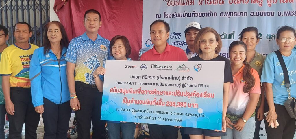 การจัดงานกิจกรรมตามโครงการ 4/77 ปีที่ 14“ซ่อมแซม สานฝัน ปันความรู้ สู่บ้านเกิด เป็นโครงการที่ทางบริษัททีบีเคเคได้ดำเนินการมาอย่างต่อเนื่อง ซึ่งบริษัทตระหนักถึงการที่ภาคธุรกิจต้องมีความรับผิดชอบต่อสังคมและสิ่งแวดล้อม เพื่อเสริมสร้างความเข้มแข็งให้กับสังคม มีเป้าหมายดำเนินการใน 4 ภาค 77 จังหวัด “ซ่อมแซม ร่วมสร้างและบริจาคสิ่งของ” โดยปีนี้เป็นปีที่ 14 ทางบริษัทได้พิจารณาพื้นที่เพื่อดำเนินกิจกรรมที่