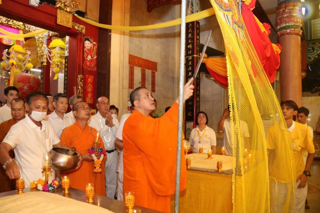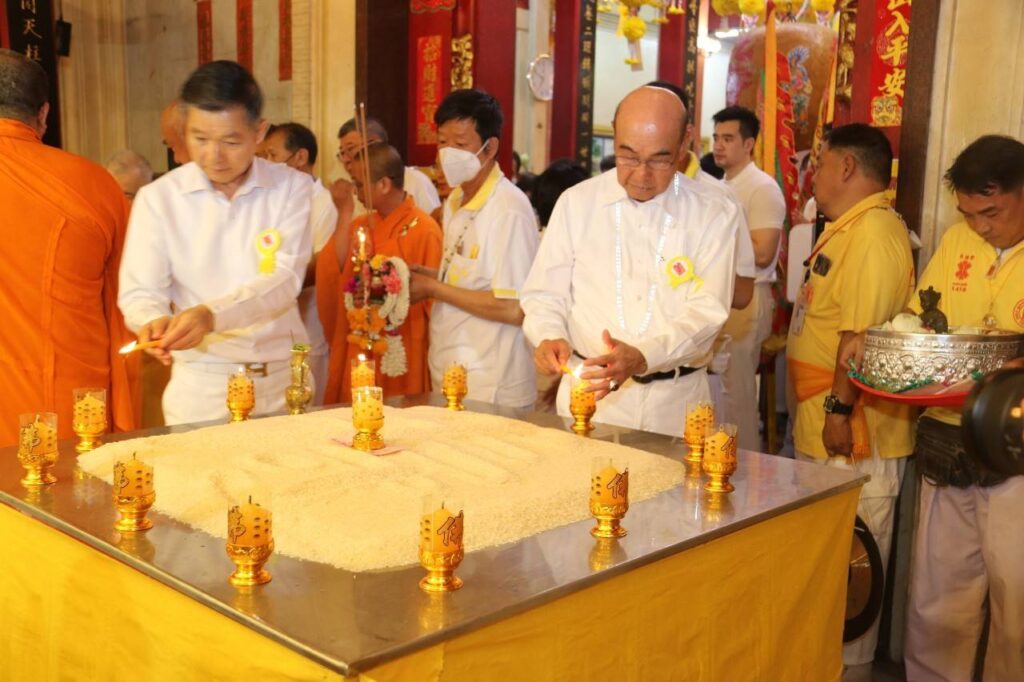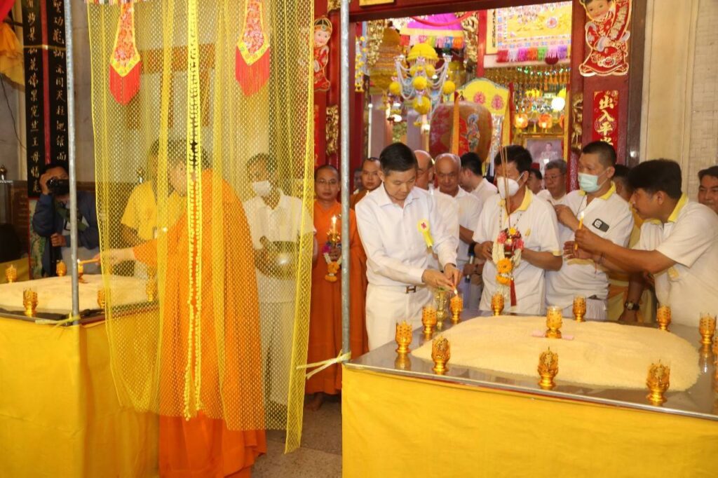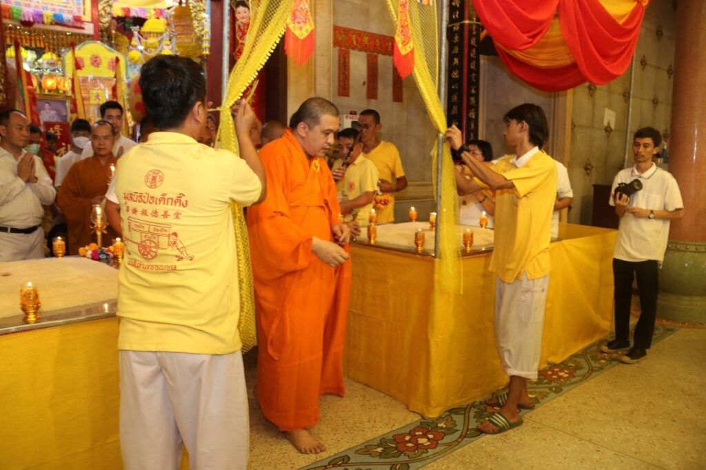 วันเสาร์ที่ 21 ตุลาคม พ.ศ. 2566 เวลา 18.00 น. ณ ศาลเจ้าไต้ฮงกง มูลนิธิป่อเต็กตึ๊ง พลับพลาไชย กรุงเทพฯ : มูลนิธิป่อเต็กตึ๊ง นำโดย นายวิชิต ชินวงศ์วรกุล รองประธานกรรมการฯ เป็นประธานในพิธี พร้อมด้วย นายวิรุฬ เตชะไพบูลย์ ที่ปรึกษาประธานกรรมการฯ,นายสุรพงษ์ เตชะหรูวิจิตร กรรมการและรองเลขาธิการฯ และนายนิพนธ์ ลีละศิธร กรรมการฯ พร้อมด้วย ผู้ช่วยกรรมการ และผู้บริหารมูลนิธิฯ ร่วมในพิธี “เวียนธูปศักดิ์สิทธิ์” เนื่องในเทศกาลกินเจ ประจำปี 2566 ตั้งจิตอธิษฐาน ขอพรจากเทพเจ้า เพื่อความเป็นสิริมงคล โดยเชื่อว่าเมื่อรับพรจากเทพเจ้าแล้ว จะทำให้จิตใจเบิกบาน ผ่องแผ้ว มีแต่ความสุขความเจริญรุ่งเรือง โดยมี เจ้าหน้าที่ และ อาสาสมัครมูลนิธิป่อเต็กตึ๊ง รวมทั้งศิษยานุศิษย์ และสาธุชน ร่วมพิธีกันอย่างเนืองแน่น ณ ศาลเจ้าไต้ฮงกง มูลนิธิป่อเต็กตึ๊ง พลับพลาไชย