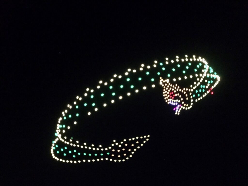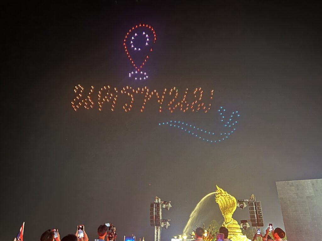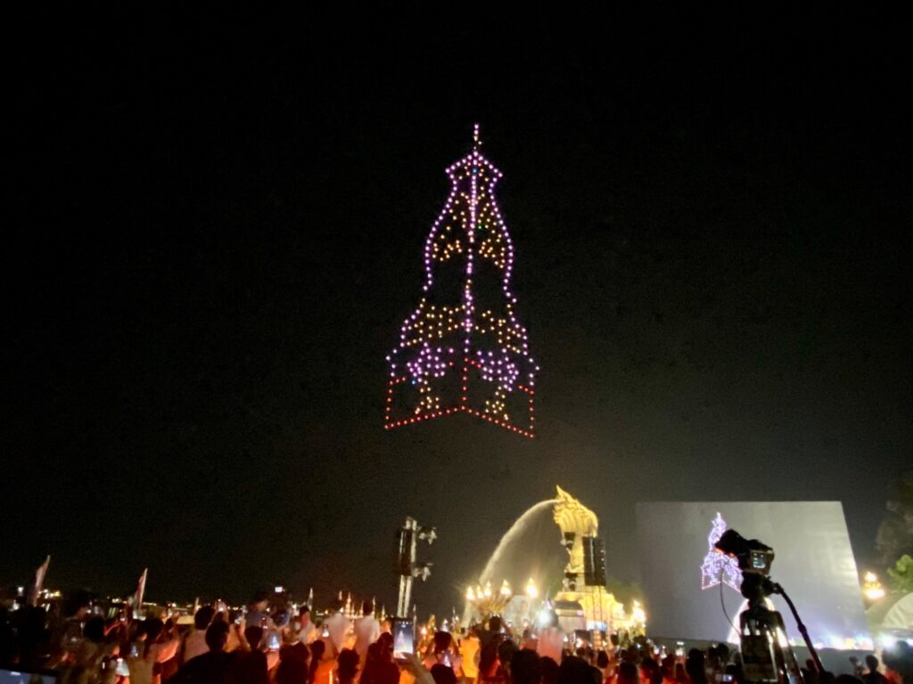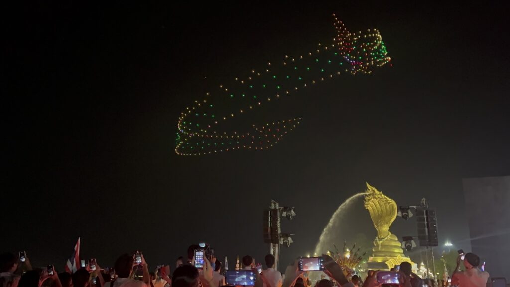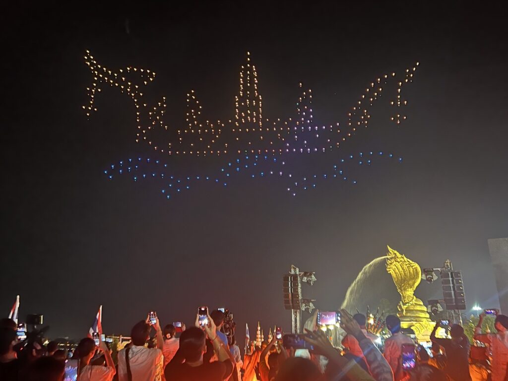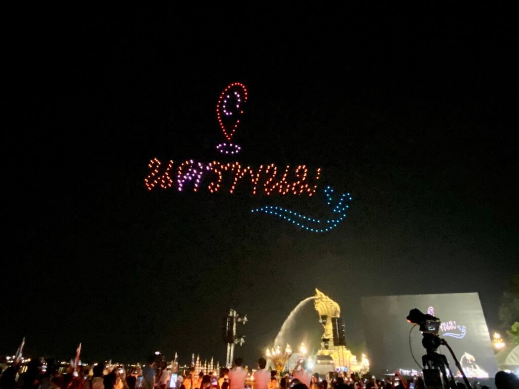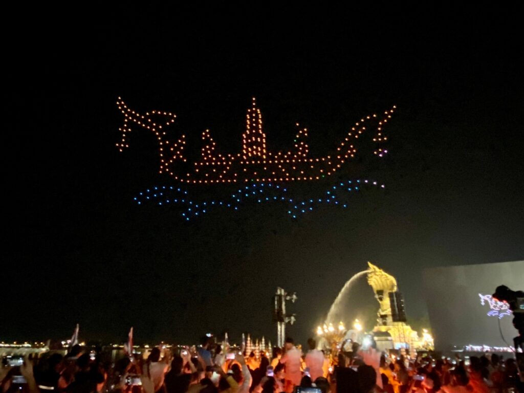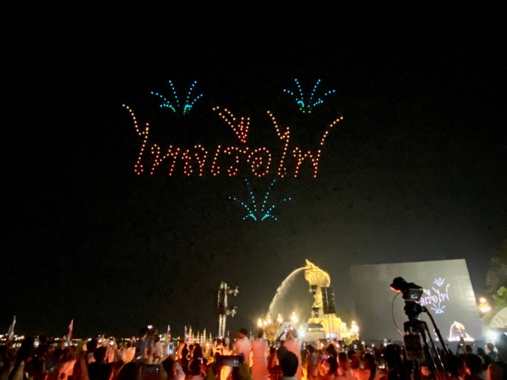 เมื่อช่วงค่ำ ของวันที่ 20 ต.ค. 2566 สำนักงานการวิจัยแห่งชาติ (วช.) กระทรวงการอุดมศึกษา วิทยาศาสตร์ วิจัยและนวัตกรรม (อว.) ร่วมกับ สมาคมกีฬาเครื่องบินจำลองและวิทยุบังคับ นำโดรน จำนวน 500 ลำ แปรอักษร ร่วมในพิธีงานประเพณีไหลเรือไฟของจังหวัดนครพนม และงานกาชาดจังหวัดนครพนม ประจำปี 2566 จัดขึ้นระหว่างวันที่ 20-30 ตุลาคม 2566 เพื่อสร้างมูลค่าเพิ่มการท่องเที่ยว และเพิ่มขีดความสามารถ ด้านการท่องเที่ยวของจังหวัดนครพนม สำหรับการแสดงบินโดรนแปรอักษร จะทำการแสดงตั้งแต่วันนี้ ถึงวันที่ 24 ตุลาคม 2566 นี้ ที่บริเวณลานพญาศรีสัตตนาคราช อำเภอเมือง จังหวัดนครพนม