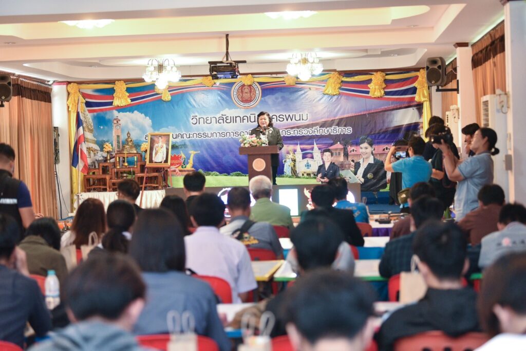 นอกจากการนำโดรนแปรอักษรมาโชว์ในครั้งนี้ (วช.) ได้สนับสนุนทุนวิจัยแก่สมาคมกีฬาเครื่องบินจำลองและวิทยุบังคับ จัดกิจกรรมส่งเสริมและสนับสนุนการวิจัยและนวัตกรรม โครงการ “การประยุกต์ใช้เทคโนโลยีและนวัตกรรมโดรนเพื่อส่งเสริมการท่องเที่ยว” โดยมี ดร.วิภารัตน์ ดีอ่อง ผู้อำนวยการสำนักงานการวิจัยแห่งชาติ (ผอ.วช.) เป็นประธานในพิธีเปิดการอบรมฯ พร้อมด้วยคณะผู้ทรงคุณวุฒิจาก (วช.) ร่วมในพิธีเปิด เพื่อถ่ายทอดองค์ความรู้เทคโนโลยีที่ทันสมัยเกี่ยวกับ “โดรน” ผ่านกิจกรรมการถ่ายทอดการบินโดรนแปรอักษร โดย นายพิศิษฐ์ มิตรเกื้อกูล นายกสมาคมกีฬาเครื่องบินจำลองและวิทยุบังคับ เป็นหัวหน้าโครงการฯ พร้อมนี้ นายวิจิตร กิจวิรัตน์ รองผู้ว่าราชการจังหวัดนครพนม นายทนงชัย เจริญรัตน์ อดีตผู้อำนวยการโรงเรียนมัธยมพัชรกิติยาภา 1 นครพนม นายชยพัทธ์ มะแม้น ผู้อำนวยการ (กสทช.) เขต 25 นายเนติชนม์ ยศแผ่น พนักงานกองกำกับมาตรฐานและการจราจรระบบอากาศยานซึ่งไม่มีนักบิน สำนักงานการบินพลเรือนแห่งประเทศไทย และคณะผู้บริหารหน่วยงานต่างๆ เข้าร่วมในพิธีเปิดการอบรมฯ ณ หอประชุมวิทยาลัยเทคนิคนครพนม (วิทยาลัยสารพัดช่างนครพนมเดิม) จังหวัดนครพนม