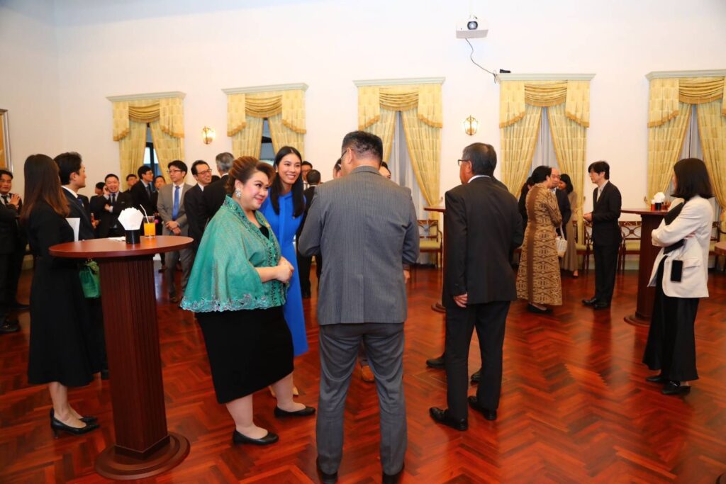 เมื่อวันที่ 24 ต.ค.2566 : ฯพณฯ นายนะชิดะ คะสุยะ เอกอัครราชทูตวิสามัญผู้มีอำนาจเต็มแห่งญี่ปุ่น (ออท.ญี่ปุ่น) ได้เรียนเชิญนางสาวศุภมาส อิศรภักดี รมว.กระทรวงการอุดมศึกษา วิทยาศาสตร์ วิจัยและนวัตกรรม (อว.) พร้อมด้วยนางสาวสุชาดา แทนทรัพย์ เลขานุการ รมว.กระทรวง (อว.) และ ศ.ดร.ศุภชัย ปทุมนากุล รองปลัดกระทรวง (อว.) รักษาราชการแทนปลัดกระทรวง (อว.) ร่วมงานเลี้ยงรับรองคณะผู้แทนจากหน่วยงานด้านอวกาศภาครัฐและเอกชนของประเทศญี่ปุ่น ได้แก่ The National Space Policy Secretariat,Cabinet Office of the Government of Japan และองค์การสำรวจอวกาศญี่ปุ่น (The Japan Aerospace Exploration Agency: JAXA) ในโอกาสที่เดินทางมาร่วมงาน Thailand Space Week 2023 ณ ทำเนียบเอกอัครราชทูตญี่ปุ่น
