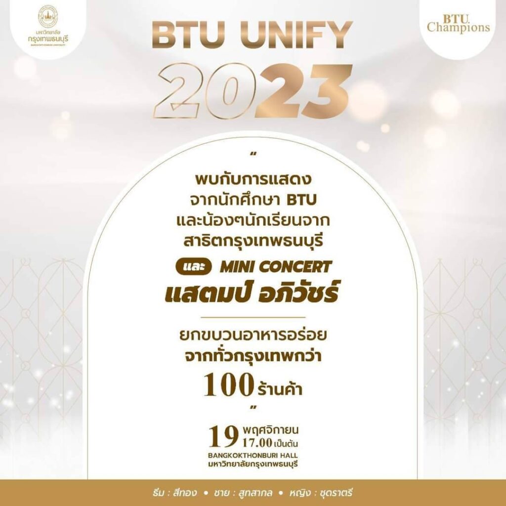 …เริ่มงาน วันอาทิตย์ที่ 19 พฤศจิกายน 2566 เวลา 17.00 น. เป็นต้น ณ BANGKOKTHONBURI HALL มหาวิทยาลัยกรุงเทพธนบุรี
