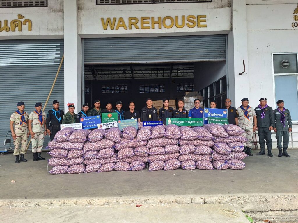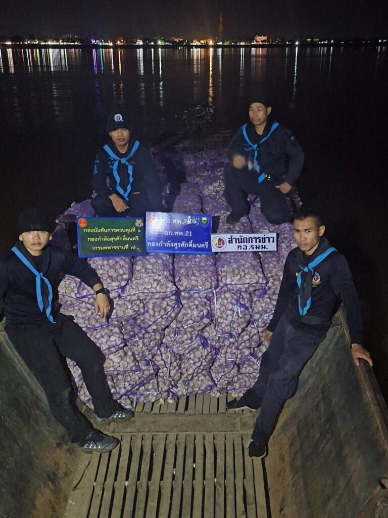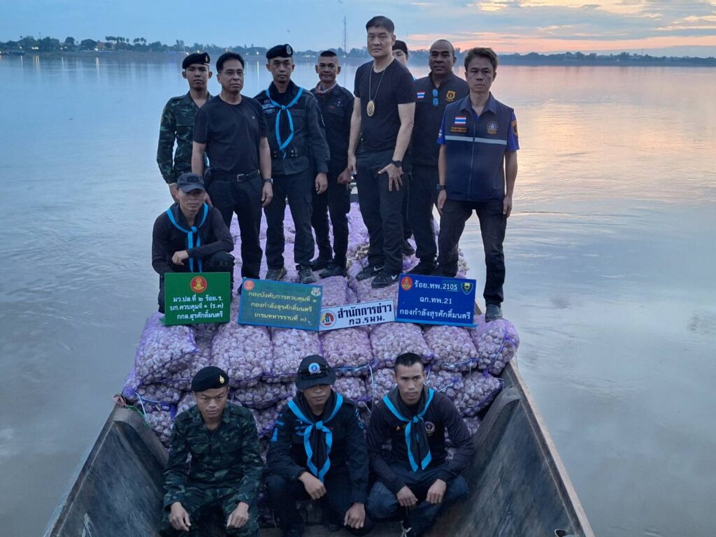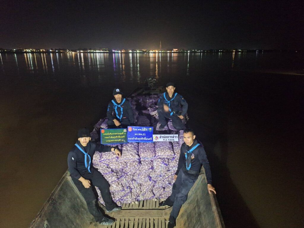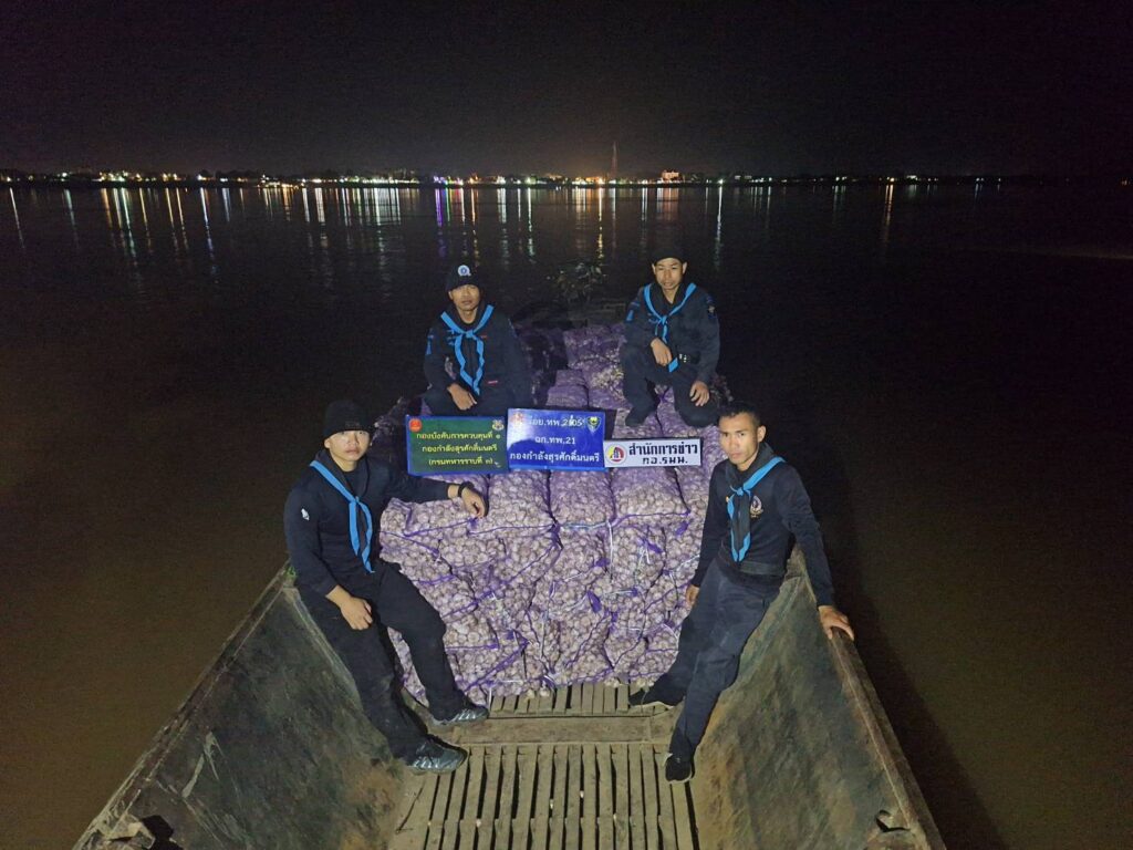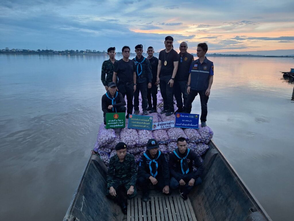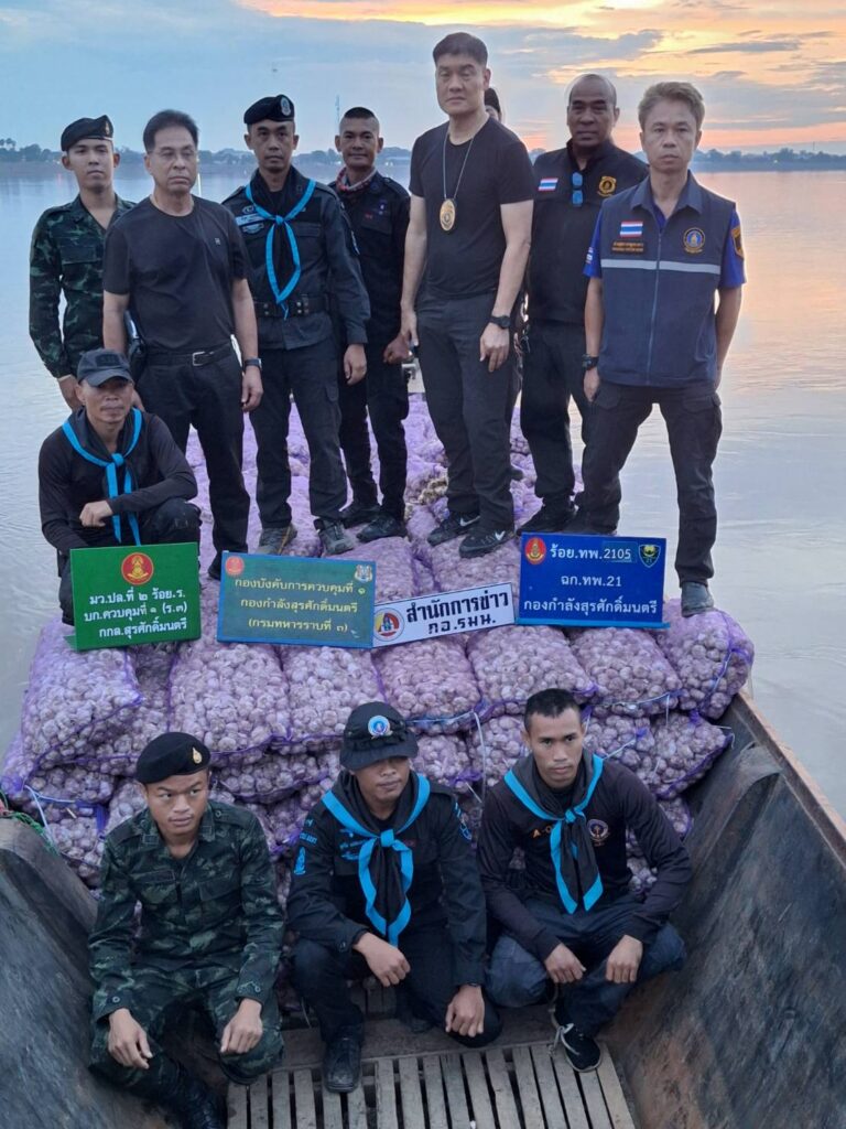 เมื่อวันที่ 25 ตุลาคม 2566 เวลา 00.30 น. ร้อย ทพ.2105 ฉก.ทพ.21 บูรณาการร่วมกับ ชปข.กอ.รมน., สง.ศุลกากร ภาคที่ 2, ร้อย ร.กกล.สุรศักดิ์มนตรี หลังได้รับแจ้งจากแหล่งข่าวว่าจะมีการลักลอบขนสินค้าไม่ผ่าน พรบ.ศุลกากร หนีภาษี (กระเทียม) บริเวณริมแม่น้ำโขงพื้นที่ชุมชนนาโปน้อย ต.มุกดาหาร อ.เมืองมุกดาหารฯ