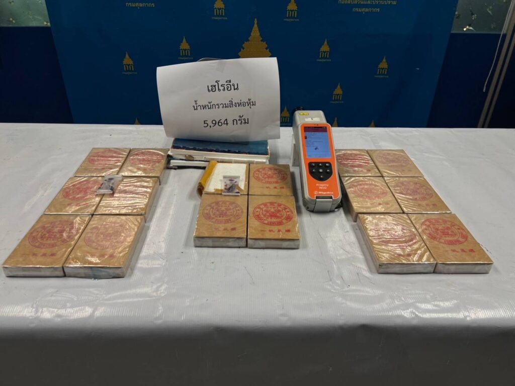 เจ้าหน้าที่ศุลกากรและชุดปฏิบัติการ AITF ร่วมกันตรวจยึดพัสดุขาออกระหว่างประเทศ เตรียมส่งออกไปยังประเทศออสเตรเลีย สำแดงชนิดสินค้าเป็นอุปกรณ์กีฬา โดยมีการซุกซ่อนยาเสพติดให้โทษ ประเภทที่ 1 เฮโรอีน (Heroine) อยู่ภายในของม้วนผ้าก๊อซ จำนวน 811 กรัม รวมมูลค่ากว่า 2,433,000 บาท