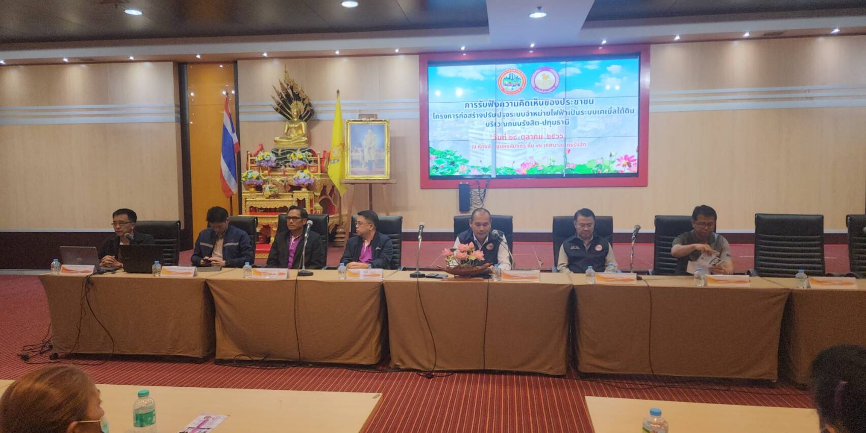 การประชุมโครงการปรับปรุงระบบจำหน่ายไฟฟ้าเป็นระบบเคเบิลใต้ดิน บริเวณถนนรังสิต – ปทุมธานี ในวันนี้เป็นการประชาสัมพันธ์ ผลความคืบหน้า และปัญหาที่อาจจะเกิดขึ้นกับประชาชนในรูปแบบประชาพิจารณ์ ถามความคิดเห็นของประชาชนในพื้นที่ พร้อมบอกถึงผลกระทบที่อาจจะเกิดขึ้น อาทิ ผลกระทบต่อการจราจร จากการปิดการจราจรบางส่วนเพื่อก่อสร้าง อาจก่อให้เกิดปัญหา การจราจรติดขัด ซึ่งจะมีการควรประชาสัมพันธ์ให้ประชาชนทราบถึงเส้นทางที่ได้รับผลกระทบ และวางแผนเส้นทางเลี่ยง การจราจรล่วงหน้า ด้านผลกระทบต่อ สิ่งแวดล้อม จากการขนส่งวัสดุก่อสร้าง การขุดเจาะดิน การฝังท่อร้อยสายไฟฟ้า อาจก่อให้เกิดมลภาวะทางอากาศ เสียง และฝุ่นละออง จะมีการควบคุมและจัดการมลภาวะเหล่านี้ไม่ให้ ส่งผลกระทบต่อประชาชนและสิงแวดล้อม และผลกระทบต่อประชาชน จากการก่อสร้างอาจก่อให้เกิดความรำคาญ เช่น เสียงดัง ฝุ่นละออง ทางหน่วยงานที่เกี่ยวข้องจะมีการพิจารณามาตรการเยียวยาที่เหมาะสม เช่น การชดเชยค่าเสียหาย หรืออำนวยความสะดวกแก่ประชาชนในพื้นที่ก่อสร้าง ซึ่งภายหลังจากการนำเสนอข้อมูลต่างๆ ให้กับประชาชน ได้มีการสอบถามข้อกังวลต่างๆ และตอบคำถามจนประชาชนพอใจ พร้อมกับยกมือสนับสนุนการจัดทำโครงการดังกล่าวอย่างพร้อมเพรียง.