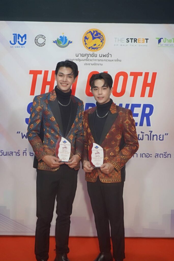 งานนี้สองหนุ่มยังได้โชว์ผ้าไทยแบบหล่อๆ ในฐานะ นายแบบ ในชุดฟินเนอเร่ เรียกเสียงปรบมือและเสียงกรี๊ดลั่น!! ห้างเดอะสตรีท รัชดา เลยทีเดียว โดยมี ดร.วโรดม ศิริสุข ร่วมเดินแบบ ด้าน คุณนิคม เหรียญทอง ผู้จัดฯ ก็ยิ้มแก้มปริ และชื่นชมในความสำเร็จของสองหนุ่ม รวมทั้ง หนุ่มซัน-ธนพนธ์ นิยมสกุล เด็กในสังกัดคุณนิคม ก็มาร่วมแสดงความยินดีด้วย
