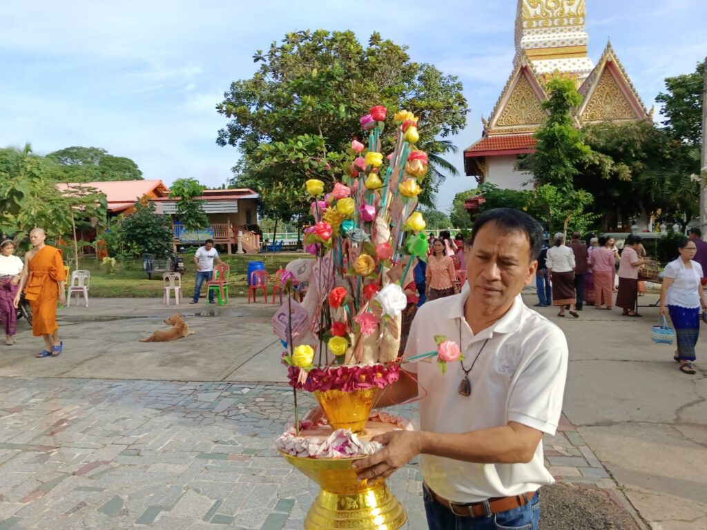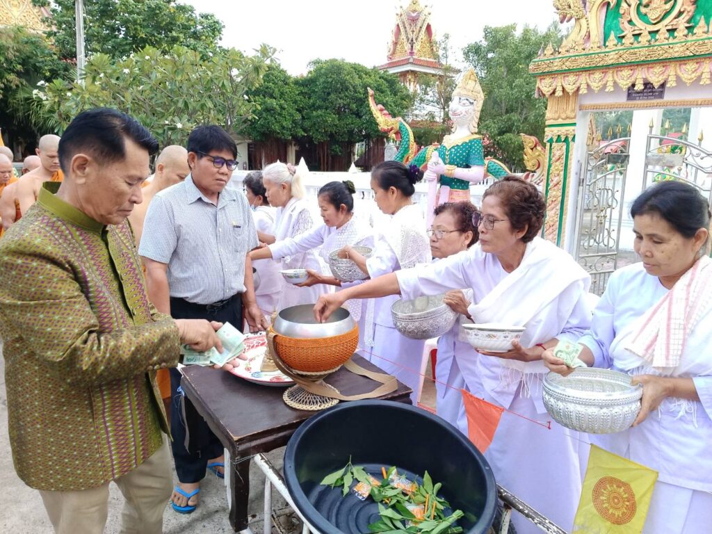 นายก ดิลก อินทร์ผล นายกองค์การบริหารส่วนตำบลเก่างิ้ว เป็นประธานในพิธีพร้อมด้วยคณะผู้บริหารพนักงานเจ้าหน้าที่องค์การบริหารส่วนตำบลเก่างิ้วได้นำกองผ้าป่าสามัคคีมาถวายรายได้จากการทำพิธีปลุกเสกสร้างเหรียญ รุ่นเจริญพร หลวงปู่มหาสอน รวิวัณโณ ณ วัดสระแก้ว เพื่อสมทบทุนสร้างกำแพงแก้วและซุ้มประตูรอบพระธาตุศิริมงคลนวรัตน์ ในโอกาสวันออกพรรษาครั้งนี้ด้วย