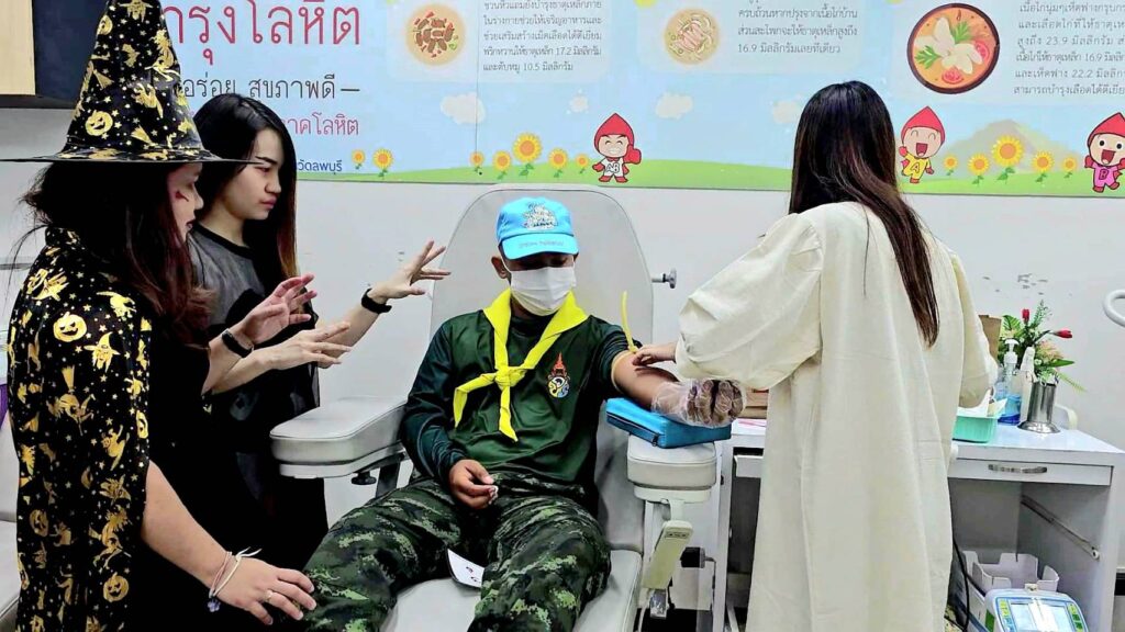 ที่ ภาคบริการโลหิตแห่งชาติที่ 2 จังหวัดลพบุรี นักเทคนิคการแพทย์หญิง พัชรากร กรำกระโทก หัวหน้าภาคบริการโลหิตแห่งชาติที่ 2 จังหวัดลพบุรี ได้ร่วมกับ ศูนย์บริการโลหิตแห่งชาติ สภากาชาดไทย จัดกิจกรรม บริจาคโลหิต ในวันปล่อยผี ต้อนรับ วันฮาโลวีน