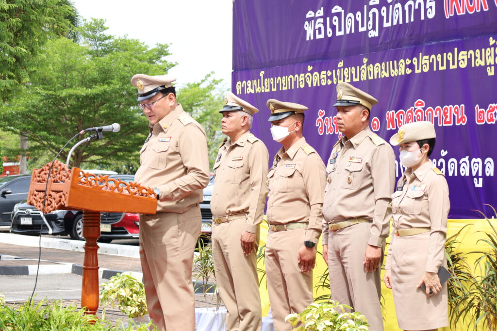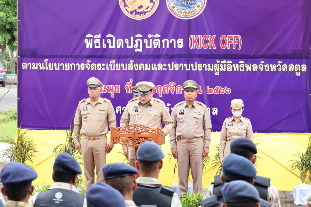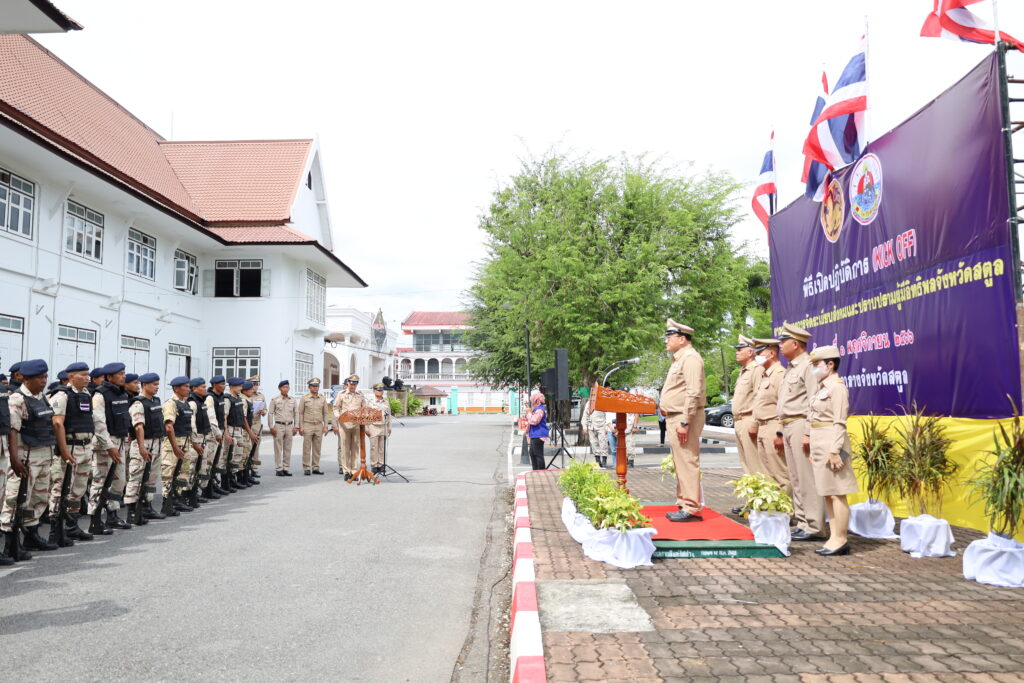 วันนี้ 1 พ.ย. 66 ที่บริเวณศาลากลางจังหวัดสตูล อำเภอเมือง จังหวัดสตูล นายศักระ กปิลกาญจน์ ผู้ว่าราชการจังหวัดสตูล เป็นประธานในพิธีเปิดปฏิบัติการ Kick Off และปล่อยแถวรถตรวจการเพื่อขับเคลื่อนนโยบายการจัดระเบียบสังคมและปราบปรามผู้มีอิทธิพล เพื่อความสงบเรียบร้อยของสังคมในพื้นที่จังหวัดสตูล โดยมีนายชาตรี ณ ถลาง รองผู้ว่าราชการจังหวัดสตูล นายชูชีพ ธรรมเพชร รองผู้ว่าราชการจังหวัดสตูล นายวิชาญ ชัยเศรษฐสัมพันธ์ ปลัดจังหวัดสตูล พร้อมด้วยเจ้าหน้าที่จากชุดปฎิบัติการพิเศษฝ่ายปกครองจังหวัดสตูลและเจ้าหน้าที่ที่เกี่ยวข้องเข้าร่วมกิจกรรมป็นจำนวนมาก นอกจากนี้ จะมีการเปิดศูนย์ปฎิบัติการ Kick Off โดยชุดปฎิบัติการพิเศษฝ่ายปกครองอำเภอ ทั้ง 7 อำเภอในพื้นที่จังหวัดสตูลโดยพร้อมเพรียงกัน