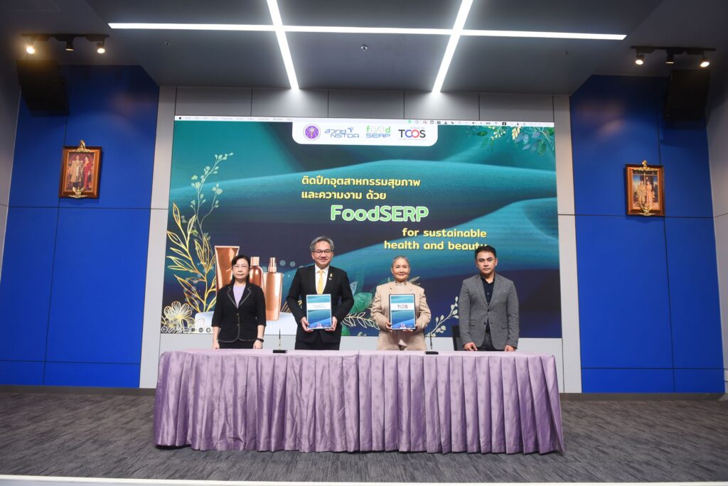 ทั้งนี้ ภายหลังพิธีลงนามความร่วมมือฯ ได้เปิดเวทีเสวนา เรื่อง “ติดปีกอุตสาหกรรมสุขภาพและความงามด้วย FoodSERP for sustainable health and beauty” โดยวิทยากรผู้เชี่ยวชาญจากทั้ง 2 หน่วยงาน นำโดย ดร.วรรณพ วิเศษสงวน ผู้อำนวยการศูนย์พันธุวิศวกรรมและเทคโนโลยีชีวภาพแห่งชาติ (ไบโอเทค),ดร.กอบกุล เหล่าเท้ง ผู้อำนวยการกลุ่มแพลตฟอร์มบริการผลิตอาหารและส่วนผสมฟังก์ชัน (สวทช.) และ ดร.อุดม อัศวาภิรมย์ ผู้อำนวยการกลุ่มวิจัยการห่อหุ้มระดับนาโน ศูนย์นาโนเทค (สวทช.),คุณลักษณ์สุภา ประภาวัต นายกสมาคมการค้าคลัสเตอร์เครื่องสำอางไทย,ดร.ธนธรรศ สนธีระ และคุณกฤษณ์ แจ้งจรัส อุปนายกสมาคมการค้าคลัสเตอร์เครื่องสำอางไทย เพื่อแสดงถึงความเชื่อมั่นในการผลักดันอุตสาหกรรมสุขภาพและความงามของไทยตั้งแต่ต้นน้ำ กลางน้ำ ไปจนถึงปลายน้ำ เพื่อสร้างความเข้มแข็งของระบบนิเวศนวัตกรรมแก่อุตสาหกรรมเครื่องสำอางและผู้ประกอบการไทยบนเวทีนานาชาติ