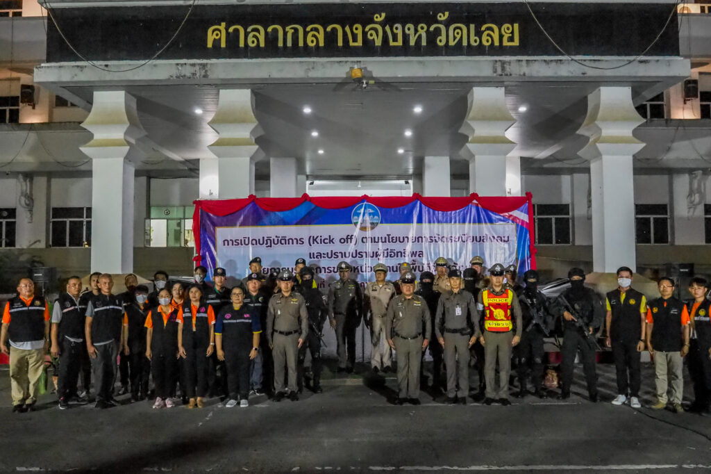 ที่บริเวณศาลากลาง จังหวัดเลย นายบุญเติม เรณุมาศ รองผู้ว่าราชการจังหวัดเลย รักษาราชการแทนผุ้ว่าราชการจังหวัดเลย เป็นประธาน โดยมี พันเอก อภิชาต รานอก รองผู้บัญชาการมณฑลทหารบกที่ 28/ /รองอำนวยการรักษาความมั่นคงภายในจังหวัดเลย พร้อมด้วยเจ้าหน้าที่ กองอำนวยการรักษาความมั่นคงภายในจังหวัดเลย บูรณาการร่วม ร่วมกับภาคส่วนราชการ จังหวัดเลยประกอบด้วยผู้บังคับการตำรวจภูธรจังหวัดเลย ปลัดจังหวัดเลย หัวหน้าสำนักงานจังหวัดเลย พัฒนาสังคมและความมั่นคงของมนุษย์จังหวัดเลย จัดหางานจังหวัดเลย สวัสดิการและคุ้มครองแรงงานจังหวัดเลย วัฒนธรรมจังหวัดเลย นายแพทย์สาธารณสุขจังหวัดเลย สรรพสามิตพื้นที่เลย ศึกษาธิการจังหวัดเลย ผู้กำกับการตรวจคนเข้าเมืองจังหวัดเลย นายอำเภอเมืองเลย และผู้กำกับการสถานีตำรวจภูธรเมืองเลย ร่วมเปิดปฏิบัติการ (Kick of) ตามนโยบายการจัดระเบียบสังคมและปราบปรามผู้มีอิทธิพล