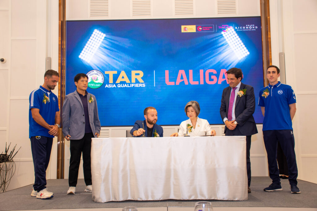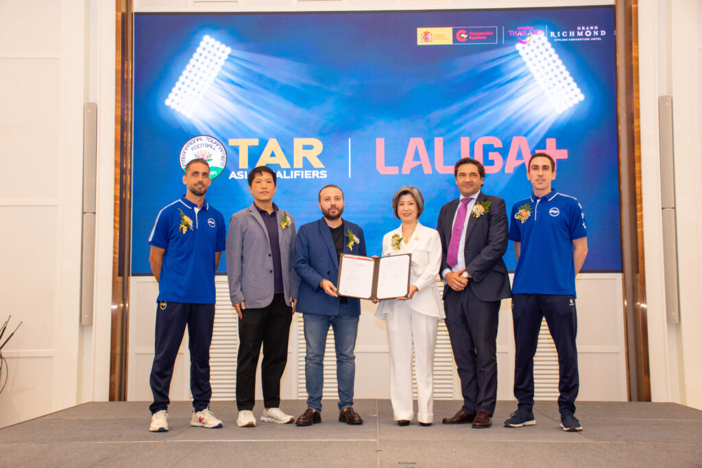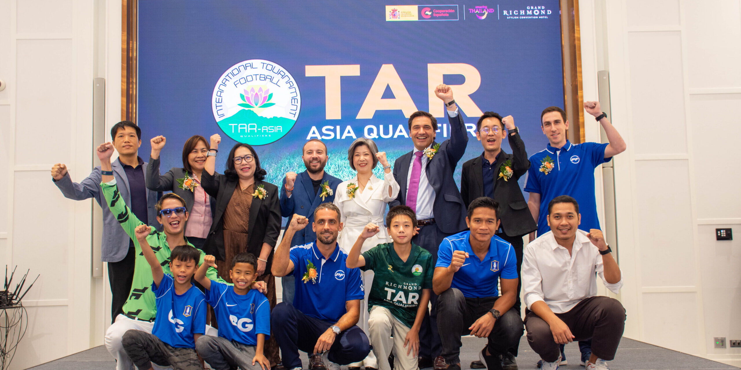 Hospitality Group (ท่านที่ 4 จากขวามือ แถวยืน) ผู้จัดงานหลัก TAR ASIA QUALIFIERS 2023 ได้ขึ้นเป็นเกียรติในการเปิดงาน กล่าวความเป็นมาและวัตถุประสงค์ในการจัดกิจกรรม เพื่อเป็นการส่งเสริม สนับสนุน และเปิดโอกาสให้เยาวชนที่มีความฝันและความสามารถทางด้านกีฬาฟุตบอลทั้งในประเทศไทย และในภูมิภาคเอเชีย ได้มีโอกาสพัฒนาฝีเท้า และเสริมสร้างประสบการณ์การแข่งขันในระดับนานาชาติ และเพื่อเป็นการคัดเลือกตัวแทนจากทวีปเอเชียเข้าร่วมการแข่งขัน TAR U11 Promises ณ เมืองบาร์เซโลน่า ประเทศสเปน โดยในปีนี้การแข่งขันฟุตบอลเยาวชน TAR ASIA QUALIFIERS 2023 จะจัดขึ้นในระหว่างวันที่ 16-17 ธันวาคม 2566 ณ สนามฟุตบอลฮาร์โรว์ อินเตอร์เนชั่นแนล สคูล แบงคอก เขตดอนเมือง กรุงเทพมหานคร พร้อมทั้งภายในงานแถลงข่าวยังมีการลงนามในบันทึกความเข้าใจ (MOU) ถึงความร่วมมือกันระหว่าง TAR ASIA QUALIFIERS 2023 กับ LALIGA+ เพื่อเป็นส่วนหนึ่งของรายการที่จะถูกฉายออกอากาศผ่านช่อง LALIGA+ ทำให้เป็นที่รู้จักในวงกว้างมากขึ้น โดยได้รับเกียรติจากบุคคลสำคัญที่มาเข้าร่วมกิจกรรม Mr. Vicente Cacho Lopez de la Calzada ผู้แทนจากสถานเอกอัครราชทูตสเปนประจำประเทศไทย (ท่านที่ 3 จากขวามือ แถวยืน), คุณพงศ์พุฒิ วรรัตนธรรม หัวหน้างานกลยุทธ์ประชาสัมพันธ์ต่างประเทศ กองประชาสัมพันธ์ต่างประเทศ การท่องเที่ยวแห่งประเทศไทย (ท่านซ้ายมือสุด แถวยืน), Mr. Jordi Casanovas Molist (ท่านตรงกลาง แถวนั่ง) และ Mr. Jordi Bartes Creus (ท่านขวามือสุด แถวยืน) ผู้ก่อตั้ง TAR ASIA และเป็นผู้บริหารศูนย์ฝึก PFA ประเทศไทย, Mr. Giorgio Pompili Rossi ผู้แทนจาก ลา ลีก้า ประเทศไทย (ท่านที่ 4 จากซ้ายมือ แถวยืน) และ ผู้สนับสนุนโครงการ คุณศุภชัย อึ้งพิสิฐศักดิ์ ผู้จัดการฝ่ายการตลาดอาวุโส บริษัท รอยัลไทย ทีซีเอ็ม คอร์เปอร์เรชั่น จำกัด (มหาชน) (ท่านที่ 2 จากขวามือ แถวยืน), คุณนิภาพร มีสุขเจริญสวัสดิ์ ผู้จัดการแผนกขายโครงการ บริษัท มิตซูบิชิ อิเล็กทริก จำกัด (ท่านที่ 2 จากซ้ายมือ แถวยืน), คุณชญาทิพ วีระพันธุ์ ผู้จัดการแผนกฝ่ายโครงการ บริษัท นิปปอน เพ้นท์ จำกัด (ท่านที่ 3 จากซ้ายมือ แถวยืน) และ กูรูด้านกีฬาฟุตบอล คุณธรรมวัตร เอกฉัตร (คุณอุ้ยอ้าย) บรรณาธิการ BALL THAI STAND จาก Mainstand (ท่านขวามือสุด แถวนั่ง), คุณอรรถพล ไข่ทอง (คุณเบลล์) จากเพจขอบสนาม (ท่านซ้ายมือสุด แถวนั่ง), คุณชาตรี ฉิมทะเล หัวหน้าผู้ฝึกสอนทีมเยาวชน สโมสร BG Pathum Unite (ท่านที่ 2 จากขวามือ แถวนั่ง) ซึ่งงานแถลงข่าวจัดขึ้น ณ ห้องแกรนด์ เพิร์ล ชั้น 35 โรงแรมแกรนด์ ริชมอนด์ ในวันที่ 31 ตุลาคม 2566