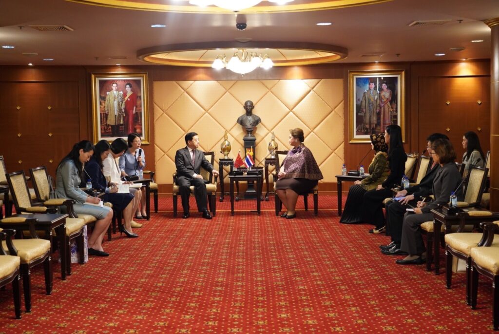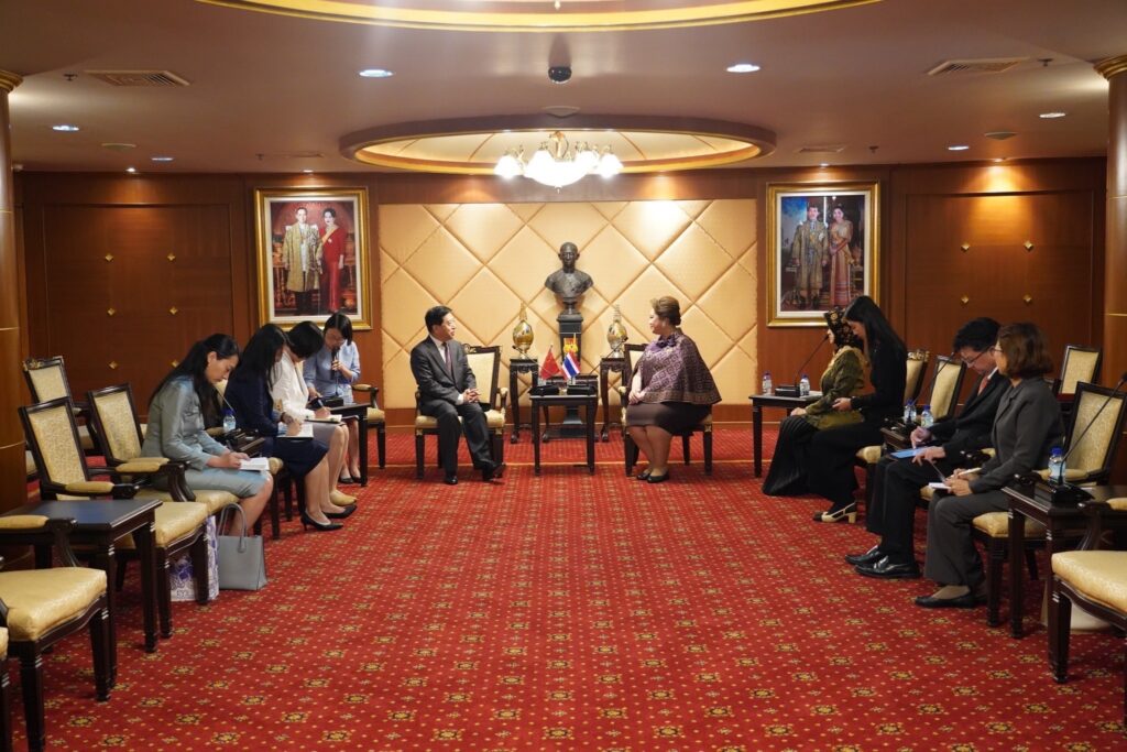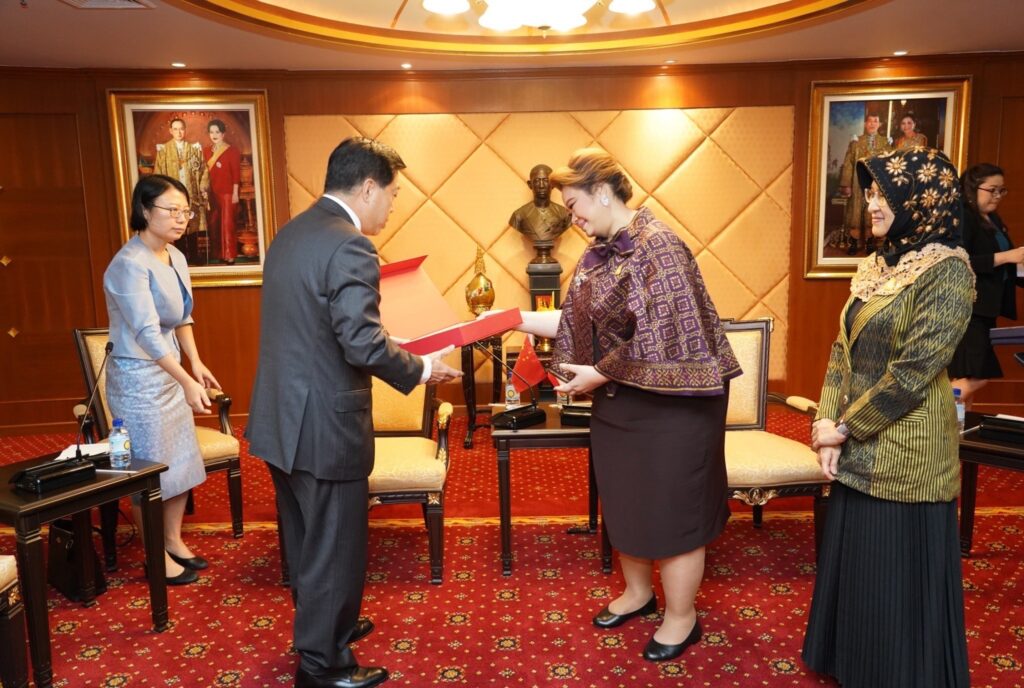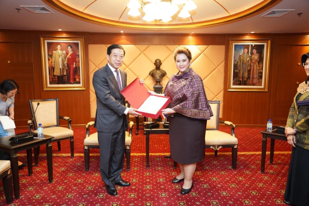 เมื่อวันที่ 2 พ.ย.2566 นายหาน จื้อเฉียง (Mr. Han Zhiqiang) เอกอัครราชทูตวิสามัญผู้มีอำนาจเต็มแห่งสาธารณรัฐประชาชนจีนประจำประเทศไทยและคณะ ได้เข้าเยี่ยมคารวะ น.ส.ศุภมาส อิศรภักดี รัฐมนตรีว่าการกระทรวงการอุดมศึกษา วิทยาศาสตร์ วิจัยและนวัตกรรม (อว.) โดยมี พญ.เพชรดาว โต๊ะมีนา ที่ปรึกษา รมว.กระทรวง (อว.) น.ส.สุชาดา แทนทรัพย์ เลขานุการ รมว.กระทรวง (อว.) และ รศ.ดร.พาสิทธิ์ หล่อธีรพงศ์ รองปลัดกระทรวง (อว.) ร่วมหารือฯ ณ ห้องพระจอมเกล้า ชั้น 3 อาคารพระจอมเกล้า (ถนนโยธี) กระทรวง (อว.)