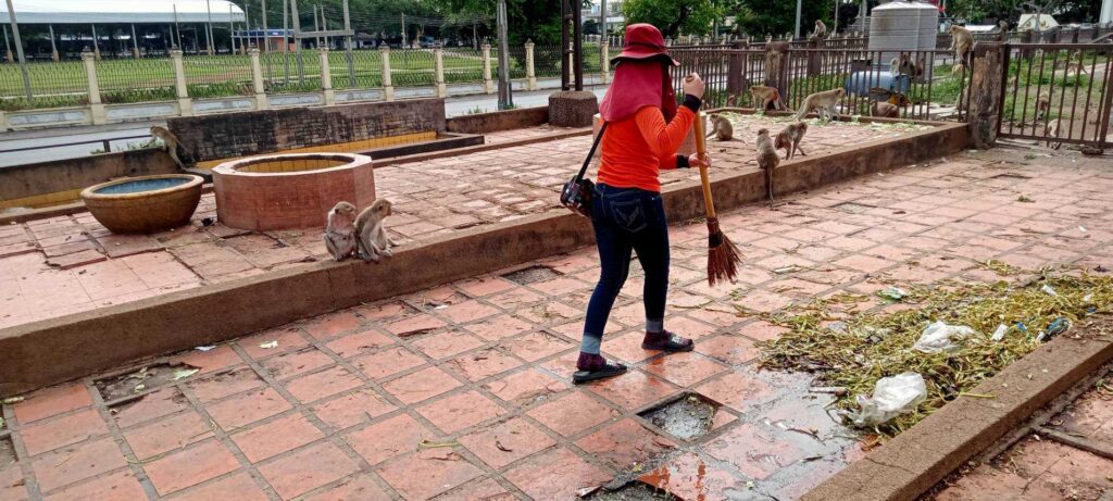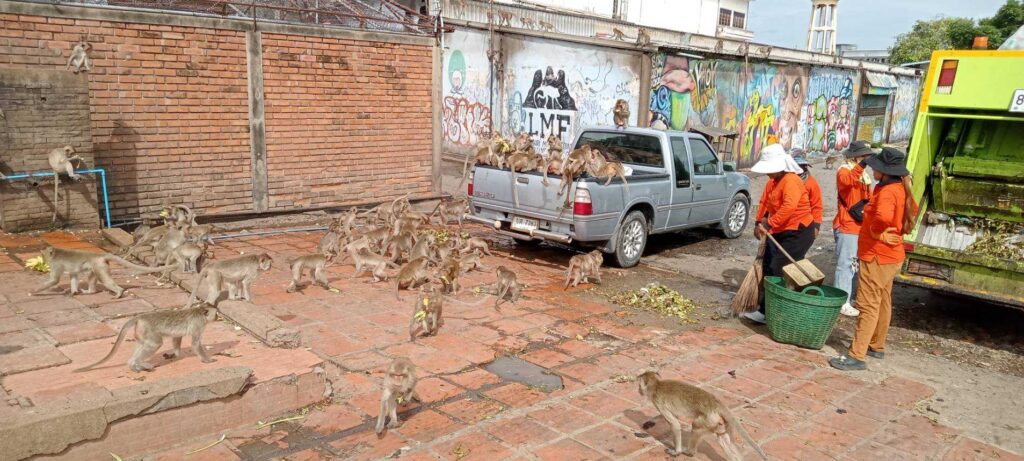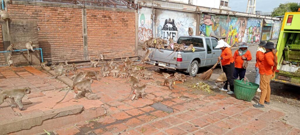 นายจำเริญ สละชีพ นายกเทศมนตรีเมืองลพบุรี ได้มอบให้เจ้าหน้าที่กองสาธารณสุขและสิ่งแวดล้อม เทศบาลเมืองลพบุรี ทำความสะอาดบริเวณจุดให้อาหารลิง ด้านหลังโรงภาพยนตร์มาลัยรามา เพื่อให้สะอาดสวยงามอยู่เสมอ