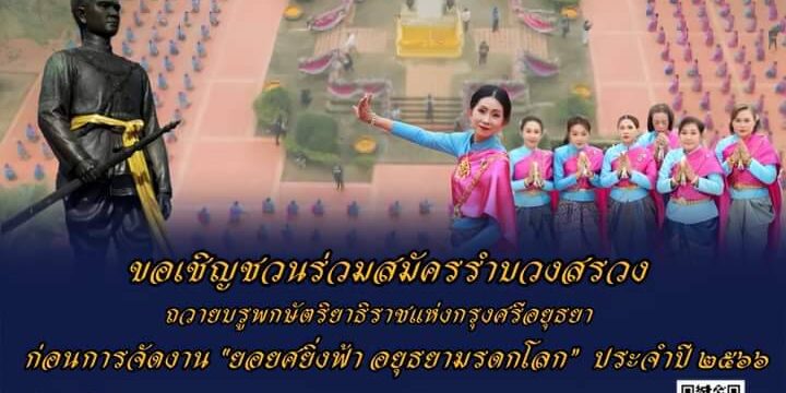 ทั้งนี้ จึงขอเชิญชวนส่วนราชการและประชาชน เข้าร่วมสมัครรำบวงสรวงดังกล่าว สำหรับส่วนราชการภายในจังหวัดฯ สมัครได้ที่ สำนักงานวัฒนธรรมจังหวัดพระนครศรีอยุธยา ในส่วนของอำเภอ สมัครได้ ณ ที่ว่าการอำเภอทุกอำเภอ ตั้งแต่บัดนี้จนถึงวันที่ ๑๐ พฤศจิกายน ๒๕๖๖ โดยกำหนดซ้อมใหญ่ ในวันเสาร์ที่ ๙ ธันวาคม ๒๕๖๖ ตั้งแต่เวลา ๐๘.๐๐ น. และรำบวงสรวงจริง ในวันพุธที่ ๑๓ ธันวาคม ๒๕๖๖ นัดพร้อมกันเวลา ๐๗.๐๐ น. ณ พระบรมราชานุสาวรีย์สมเด็จพระรามมาธิบดีที่ ๑ (พระเจ้าอยู่ทอง) หรือแสกน QR Code ดูรายละเอียดด้านล่างนี้