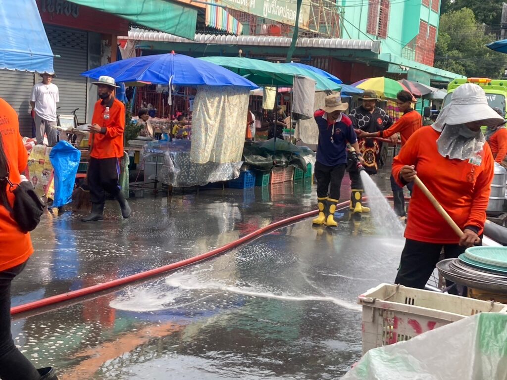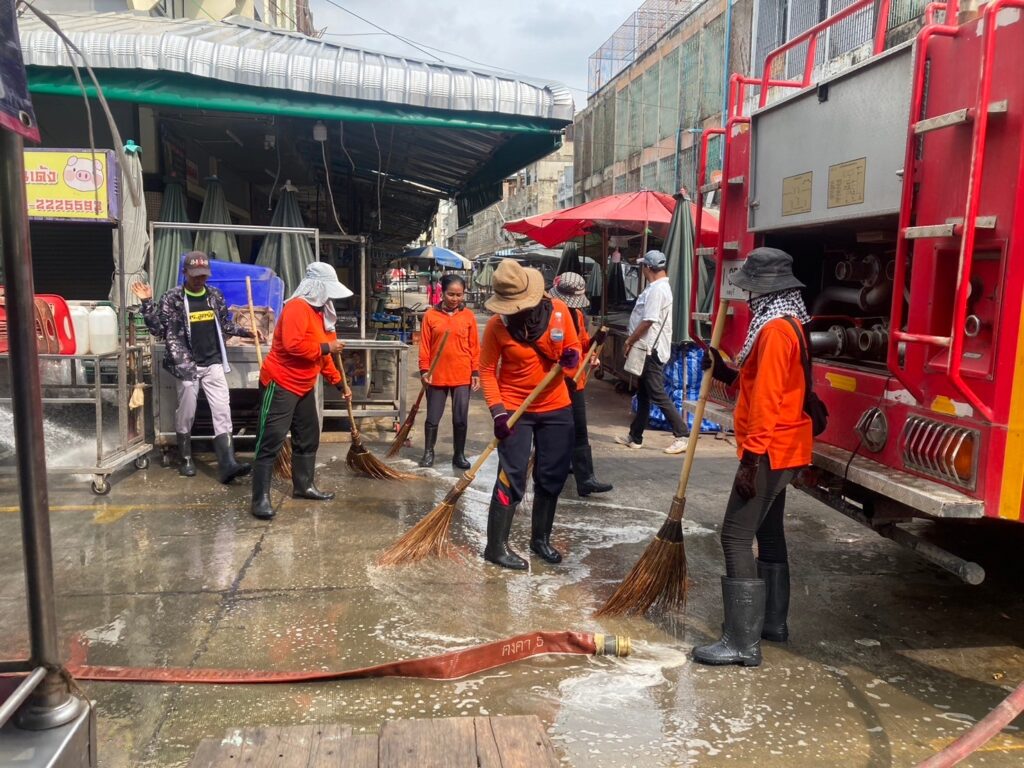 นายจำเริญ สละชีพ นายกเทศมนตรีเมืองลพบุรี มอบให้เจ้าหน้าที่กองสาธารณสุขและสิ่งแวดล้อมเทศบาลเมืองลพบุรี เจ้าหน้าที่งานป้องกันและบรรเทาสาธารณภัยเทศบาลเมืองลพบุรี นำอุปกรณ์ทำความสะอาด พร้อมด้วยรถดับเพลิง ออกปฏิบัติงานล้างตลาดสดเทศบาลเมืองลพบุรี ตามหลักการสุขาภิบาล เพื่อชำระล้างสิ่งสกปรก เชื้อโรค ทั้งภายในบริเวณตลาดสด และบริเวณรอบตลาดสด (ถนนฝรั่งเศส หน้าวัดเสาธงทอง) โดยการดำเนินการในครั้งนี้เป็นการล้างทำความสะอาดผิวถนน ทางเท้า ท่อระบายน้ำ และพ่นน้ำยาฆ่าเชื้อโรค เพื่อความปลอดภัย และไม่ให้เป็นแหล่งแพร่กระจายเชื้อโรค เป็นการสร้างความเชื่อมั่นให้กับพี่น้องประชาชนที่มาจับจ่ายใช้สอยในตลาดสดเทศบาลเมืองลพบุรีแห่งนี้