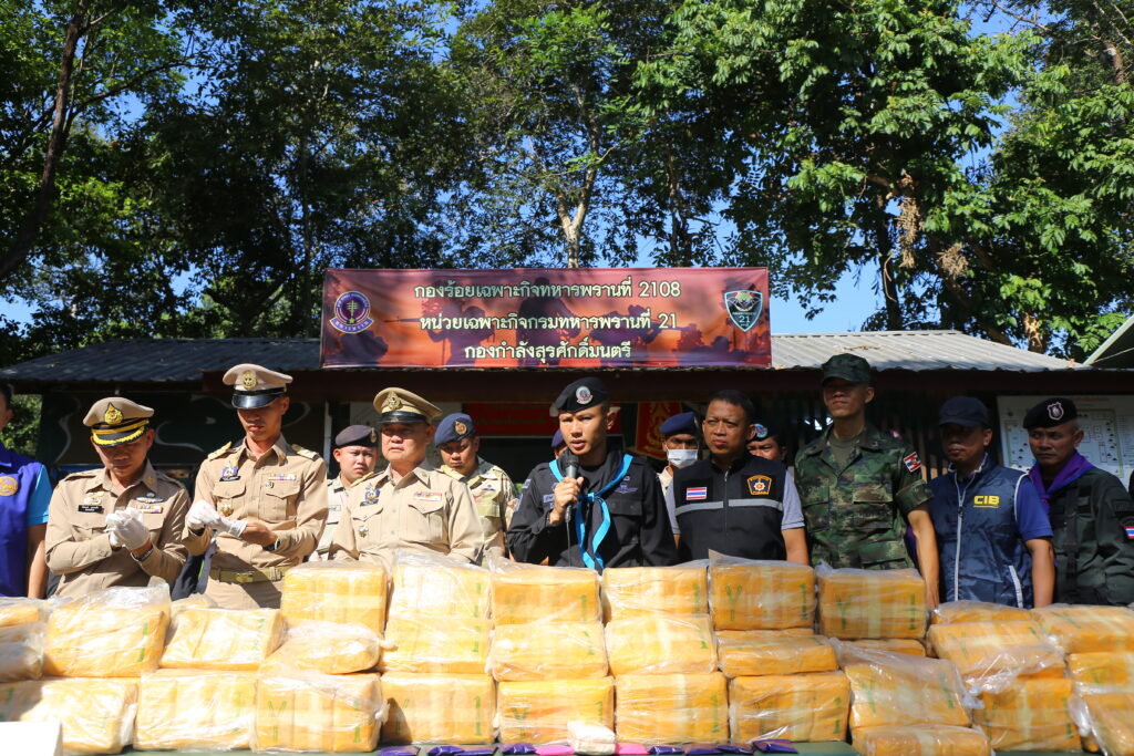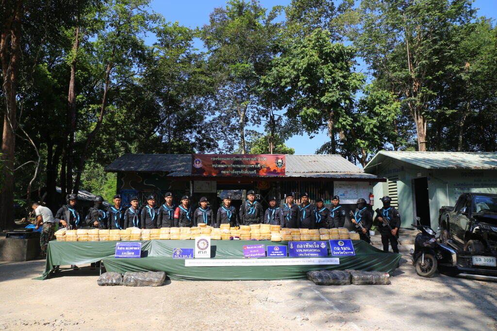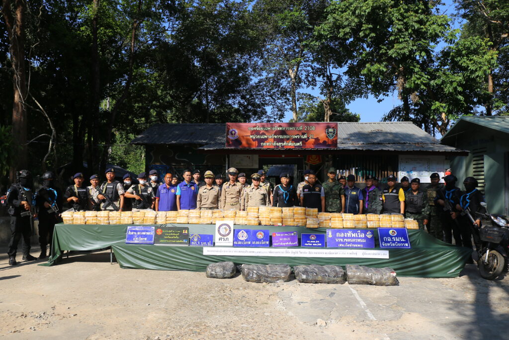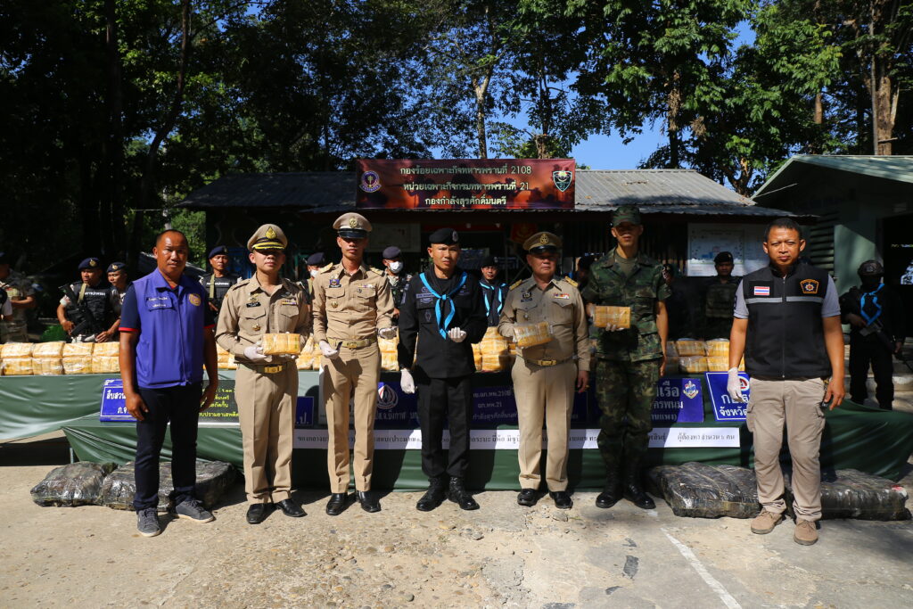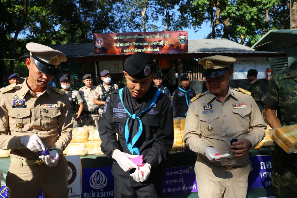 กองกำลังสุรศักดิ์มนตรี โดย พันเอก สุริวัชร์ อัครพรเดชาพงษ์ ผู้บังคับการกรมทหารพรานที่ 21/ผู้บังคับหน่วยเฉพาะกิจกรมทหารพรานที่ 21 เป็นผู้แทน พลตรี นรธิป โพยนอก ผู้บัญชาการกองกำลังสุรศักดิ์มนตรี/ผู้อำนวยการรักษาความมั่นคงภายในภาค 2 ส่วนแยก 1 พร้อมด้วยหน่วยงานความมั่นคงในพื้นที่ อำเภอบึงโขงหลง จังหวัดบึงกาฬ แถลงข่าวการตรวจยึดยาบ้า จำนวน 4 กระสอบ จำนวน 1,380,000 เม็ด และขยายผลจับกุมผู้ต้องหาขบวนการค้ายาเสพติดข้ามชาติ จำนวน 6 คน พร้อมรถยนต์กระบะ ที่ใช้ขนยาบ้าจากขบวนการค้ายาข้ามชาติ จำนวน 1 คัน และรถจักรยานยนต์ ไม่ติดแผ่นป้ายทะเบียน จำนวน 1 คัน บริเวณถนนทางเข้าหมู่บ้านท่าสีไค ตำบลดงบัง อำเภอบึงโขงหลง จังหวัดบึงกาฬ โดยในห้วงที่ผ่านมาพันเอก สุริวัชร์ อัครพรเดชาพงษ์ ผู้บังคับการกรมทหารพรานที่ 21/ผู้บังคับหน่วยเฉพาะกิจกรมทหารพรานที่ 21ได้รับแจ้งจากแหล่งข่าวว่าจะมีการลักลอบนำเข้ายาเสพติดให้โทษประเภทที่ 1 (ยาบ้า) ไม่ทราบจำนวน จากขบวนการค้ายาเสพติดข้ามชาติล๊อตใหญ่จากฝั่ง สปป.ลาว เข้ามายังฝั่งประเทศไทย บริเวณ ริมฝั่งแม่น้ำโขง พื้นที่บ้านท่าสีไค ตำบลดงบัง อำเภอบึงโขงหลง จังหวัดบึงกาฬ เพื่อลำเลียงขนส่งเข้าสู่พื้นที่ตอนในให้กับกลุ่มขบวนการค้ายาเสพติดภายในประเทศ จึงสั่งการให้ร้อยโท โกวิทย์ วงษ์แสง ผู้บังคับกองร้อยเฉพาะกิจทหารพรานที่ 2108 หน่วยเฉพาะกิจทหารพรานที่ 21 ทำการบรูณากำลังวางแผนร่วมกับหน่วยงานความมั่นคงในพื้นที่ อำเภอบึงโขงหลง จังหวัดบึงกาฬ ทำการลาดตระเวนซุ่มเฝ้าตรวจตามภาพข่าวที่ได้รับแจ้ง เจ้าหน้าที่ตรวจพบรถยนต์กระบะสีดำขับออกจาก บริเวณที่ได้รับแจ้ง เจ้าหน้าที่จึงแสดงตัวเป็นเพื่อขอเข้าตรวจสอบรถต้องสงสัย แต่รถยนต์คันดังกล่าว ได้เร่งเครื่องหลบหนี เจ้าหน้าที่จึงไล่ติดตามเส้นทางบ้านท่าสีไค้ ตำบลดงบัง แต่คนขับรถยนต์ได้หักรถยนต์ต้องสงสัยลงข้างทาง และวิ่งหลบหนีไป หน่วยจึงประสานหน่วยงานความมั่นคงในพื้นที่ เพื่อเข้าร่วมตรวจสอบรถคันดังกล่าว ตรวจพบสิ่งของต้องสงสัย จำนวน 4 กระสอบ จึงได้ทำการตรวจสอบสิ่งของต้องสงสัย ผลการตรวจสอบ พบเป็นยาเสพติดประเภทที่ 1(ยาบ้า) บรรจุอยู่ภายใน จึงได้ทำการตรวจยึดยาเสพติดดังกล่าว มายังกองร้อยเฉพาะกิจทหารพรานที่ 2108 เพื่อทำการตรวจนับอย่างละเอียด จากขยายผลในครั้งนี้หน่วยพร้อมหน่วยงานความมั่นคงในพื้นที่ได้ร่วมจับกุมผู้ต้องหาขบวนการค้ายาเสพติดข้ามชาติเป็นชายไทย จำนวน 6 คน พร้อมของกลางยาบ้า จำนวน 4 กระสอบ จำนวน 1,380,000 เม็ด รถยนต์กระบะ ยี่ห้อ มิตซูบิชิ รุ่น ไตรตัน สีดำ ท