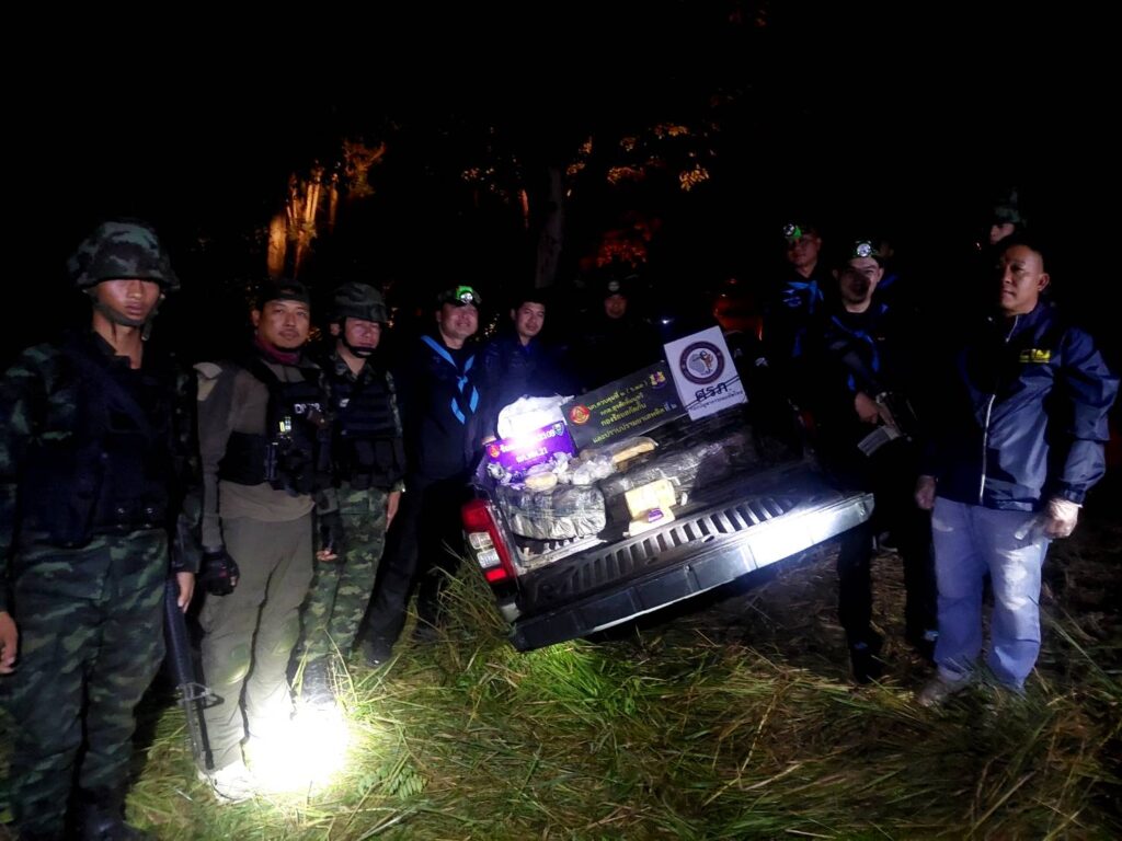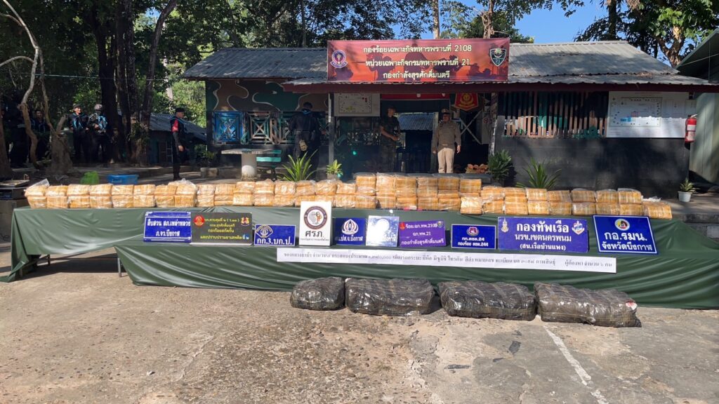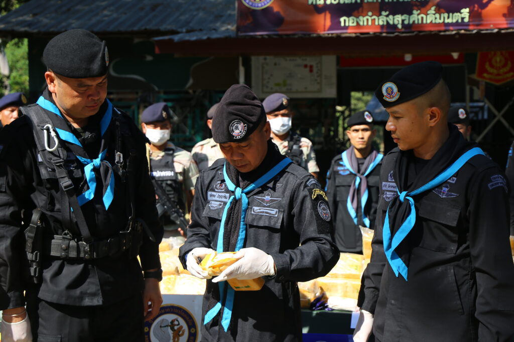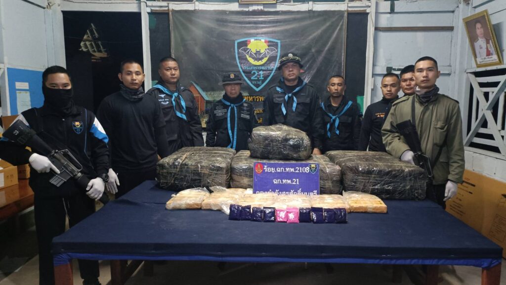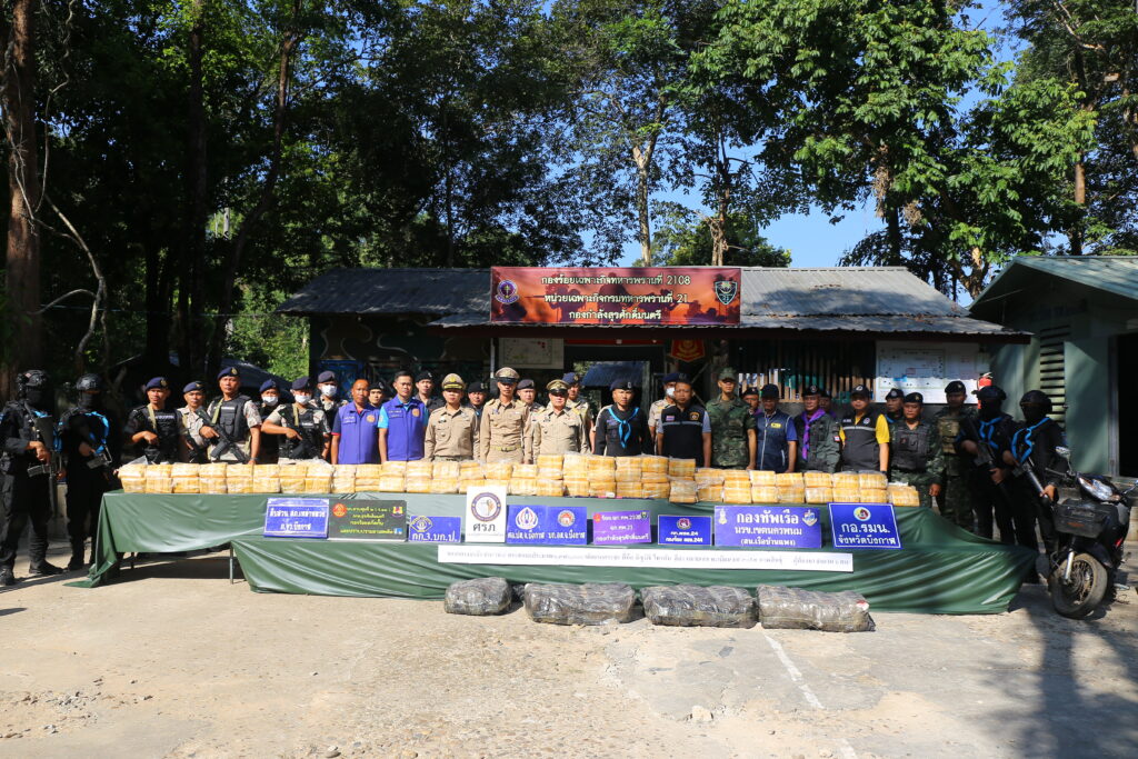 กองกำลังสุรศักดิ์มนตรี โดย พันเอก สุริวัชร์ อัครพรเดชาพงษ์ ผู้บังคับการกรมทหารพรานที่ 21/ผู้บังคับหน่วยเฉพาะกิจกรมทหารพรานที่ 21 เป็นผู้แทน พลตรี นรธิป โพยนอก ผู้บัญชาการกองกำลังสุรศักดิ์มนตรี/ผู้อำนวยการรักษาความมั่นคงภายในภาค 2 ส่วนแยก 1 พร้อมด้วยหน่วยงานความมั่นคงในพื้นที่ อำเภอบึงโขงหลง จังหวัดบึงกาฬ แถลงข่าวการตรวจยึดยาบ้า จำนวน 4 กระสอบ จำนวน 1,380,000 เม็ด และขยายผลจับกุมผู้ต้องหาขบวนการค้ายาเสพติดข้ามชาติ จำนวน 6 คน พร้อมรถยนต์กระบะ ที่ใช้ขนยาบ้าจากขบวนการค้ายาข้ามชาติ จำนวน 1 คัน และรถจักรยานยนต์ ไม่ติดแผ่นป้ายทะเบียน จำนวน 1 คัน บริเวณถนนทางเข้าหมู่บ้านท่าสีไค ตำบลดงบัง อำเภอบึงโขงหลง จังหวัดบึงกาฬ โดยในห้วงที่ผ่านมาพันเอก สุริวัชร์ อัครพรเดชาพงษ์ ผู้บังคับการกรมทหารพรานที่ 21/ผู้บังคับหน่วยเฉพาะกิจกรมทหารพรานที่ 21ได้รับแจ้งจากแหล่งข่าวว่าจะมีการลักลอบนำเข้ายาเสพติดให้โทษประเภทที่ 1 (ยาบ้า) ไม่ทราบจำนวน จากขบวนการค้ายาเสพติดข้ามชาติล๊อตใหญ่จากฝั่ง สปป.ลาว เข้ามายังฝั่งประเทศไทย บริเวณ ริมฝั่งแม่น้ำโขง พื้นที่บ้านท่าสีไค ตำบลดงบัง อำเภอบึงโขงหลง จังหวัดบึงกาฬ เพื่อลำเลียงขนส่งเข้าสู่พื้นที่ตอนในให้กับกลุ่มขบวนการค้ายาเสพติดภายในประเทศ จึงสั่งการให้ร้อยโท โกวิทย์ วงษ์แสง ผู้บังคับกองร้อยเฉพาะกิจทหารพรานที่ 2108 หน่วยเฉพาะกิจทหารพรานที่ 21 ทำการบรูณากำลังวางแผนร่วมกับหน่วยงานความมั่นคงในพื้นที่ อำเภอบึงโขงหลง จังหวัดบึงกาฬ ทำการลาดตระเวนซุ่มเฝ้าตรวจตามภาพข่าวที่ได้รับแจ้ง เจ้าหน้าที่ตรวจพบรถยนต์กระบะสีดำขับออกจาก บริเวณที่ได้รับแจ้ง เจ้าหน้าที่จึงแสดงตัวเป็นเพื่อขอเข้าตรวจสอบรถต้องสงสัย แต่รถยนต์คันดังกล่าว ได้เร่งเครื่องหลบหนี เจ้าหน้าที่จึงไล่ติดตามเส้นทางบ้านท่าสีไค้ ตำบลดงบัง แต่คนขับรถยนต์ได้หักรถยนต์ต้องสงสัยลงข้างทาง และวิ่งหลบหนีไป หน่วยจึงประสานหน่วยงานความมั่นคงในพื้นที่ เพื่อเข้าร่วมตรวจสอบรถคันดังกล่าว ตรวจพบสิ่งของต้องสงสัย จำนวน 4 กระสอบ จึงได้ทำการตรวจสอบสิ่งของต้องสงสัย ผลการตรวจสอบ พบเป็นยาเสพติดประเภทที่ 1(ยาบ้า) บรรจุอยู่ภายใน จึงได้ทำการตรวจยึดยาเสพติดดังกล่าว มายังกองร้อยเฉพาะกิจทหารพรานที่ 2108 เพื่อทำการตรวจนับอย่างละเอียด จากขยายผลในครั้งนี้หน่วยพร้อมหน่วยงานความมั่นคงในพื้นที่ได้ร่วมจับกุมผู้ต้องหาขบวนการค้ายาเสพติดข้ามชาติเป็นชายไทย จำนวน 6 คน พร้อมของกลางยาบ้า จำนวน 4 กระสอบ จำนวน 1,380,000 เม็ด รถยนต์กระบะ ยี่ห้อ มิตซูบิชิ รุ่น ไตรตัน สีดำ ท