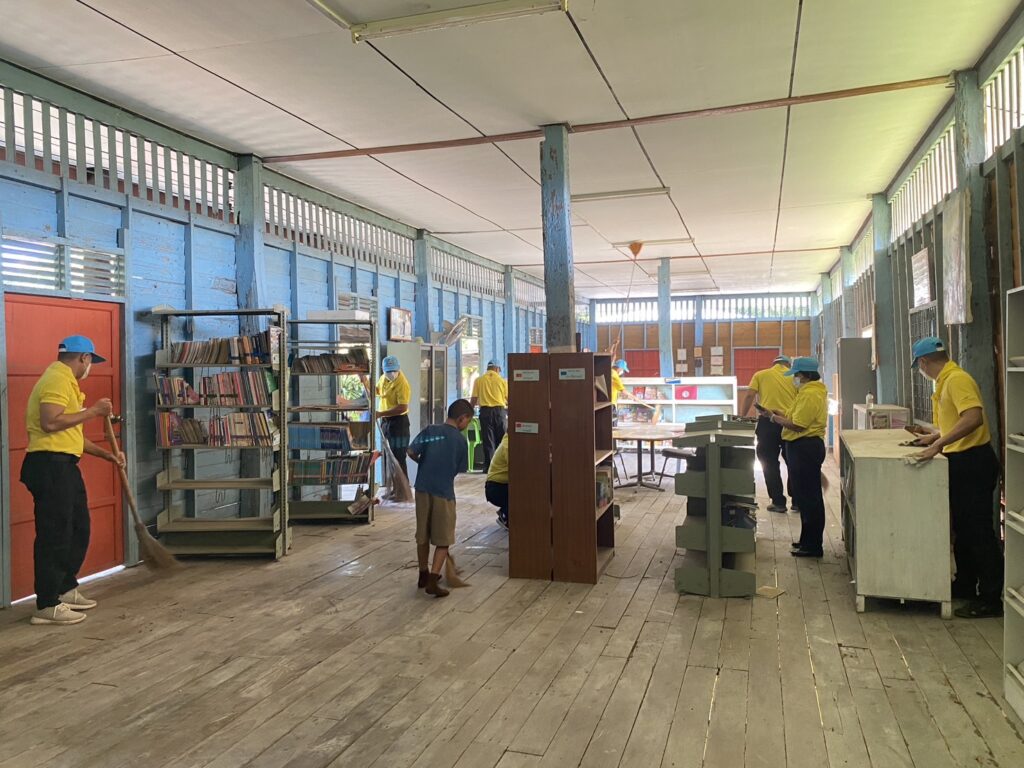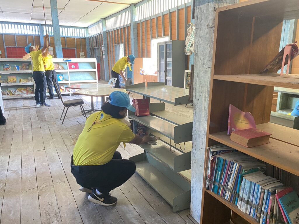 จัดกำลังพลจิตอาสาพระราชทาน จำนวน 25 นาย ร่วมกับคณะครูและนักเรียน จำนวน 15 คน จัดกิจกรรมจิตอาสาพัฒนาโรงเรียนบ้านป่าเลา ต.ป่าเลา อ.เมืองเพชรบูรณ์ จ.เพชรบูรณ์ สังกัดสำนักงานเขตพื้นที่การศึกษาประถมศึกษาเพชรบูรณ์ เขต 1 โดยร่วมกันทำความสะอาดห้องสมุดโรงเรียน จัดเรียงหนังสือให้เป็นหมวดหมู่ และทำความสะอาดชั้นวาง เพื่อให้เกิดความสะอาด สวยงาม เป็นแหล่งรวมความรู้ และเพื่อเป็นการเตรียมการก่อนเปิดการเรียนการสอน ตามโครงการ บ้าน วัด โรงเรียน (บวร) )