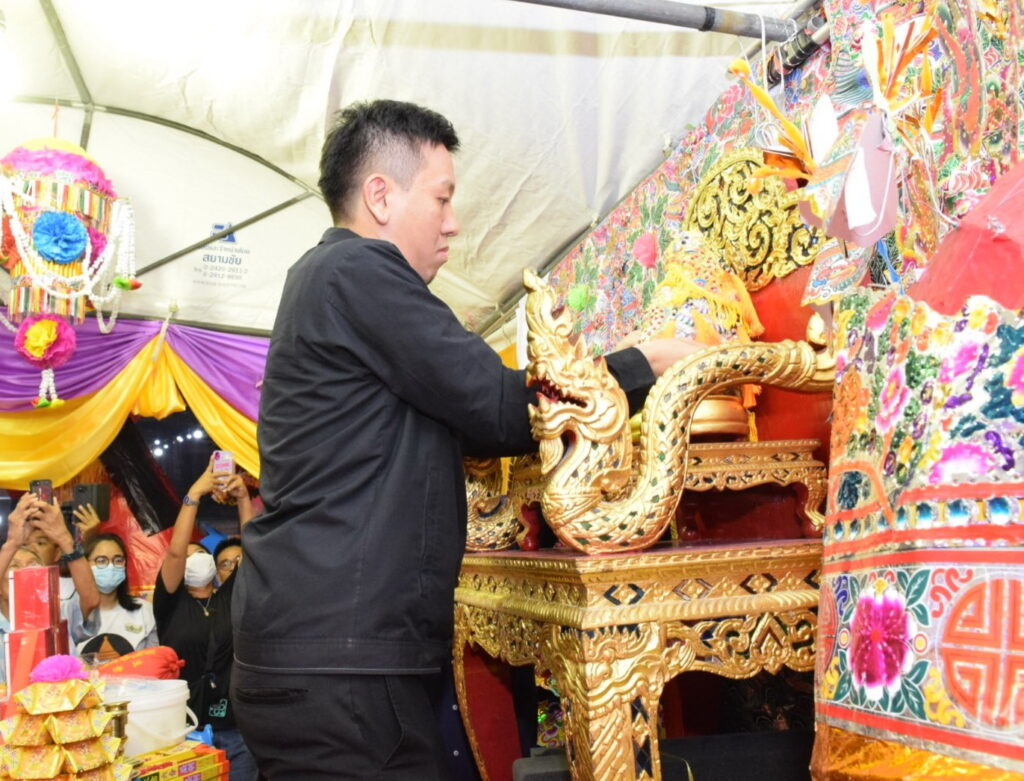 วันศุกร์ที่ 3 พ.ย.2566 ณ บริเวณสี่แยกบางลำพู เขตพระนคร โดยมี พล.ต.ต.ชัยพัชร์ ศรีประเสริฐ รองจเรตำรวจ และ ศานนท์ หวังสร้างบุญ รองผู้ว่ากทม.ฯ เป็นประธานจุดธูปเทียน พร้อมด้วย ดร.ธัชวิน สุรเศรษฐ ประธาน กต.ตร.บก.น.1-ประธานคณะดำเนินงานจัดงานประเพณีศาลเจ้าพ่อหนู-ประธานสภาฯเขตพระนคร-ประธานกต.ตร.สน.ชนะสงคราม,คุณเรืองชัย องค์ศรีตระกูล ประธานกิตติมศักดิ์คณะดำเนินงานจัดงานประเพณีศาลเจ้าพ่อหนู,คุณประสิทธิ์ สิงห์ดำรง ประธานมูลนิธิศิษย์เจ้าพ่อหนู,ดร.นฤมล-ดร.พีรวัฒน์ ประธานกลุ่ม L.S.Jewelry Group (ห้างเพชรหลีเสง)- ประธานกต.ตร.กทม.(ภาคประชาชน และประธานที่ปรึกษาคณะดำเนินงานศาลเจ้าพ่อหนู,รองผู้กำกับสน.ชนะสงคราม พ.ต.ท.ปวีร์ มั่นเมือง และพ.ต.ท.เอกภณ พุทธิกุล,คุณวิษณุ ชิระนุรังสี,คุณประวิทย์ ทิตอร่าม,คุณวรวิทย์ ศิริวนิชสุนทร,ทำพิธีอัญเชิญองค์เจ้าพ่อหนู ประทับ ณ ปะรำพิธีจัดงานประเพณีศาลเจ้าพ่อหนู ครั้งที่ 59 ประจำปี 2566 โดยมี คณะกรรมการและที่ปรึกษาศาลเจ้าพ่อหนู และศิษย์เจ้าพ่อหนู ร่วมพิธีจำนวนมาก