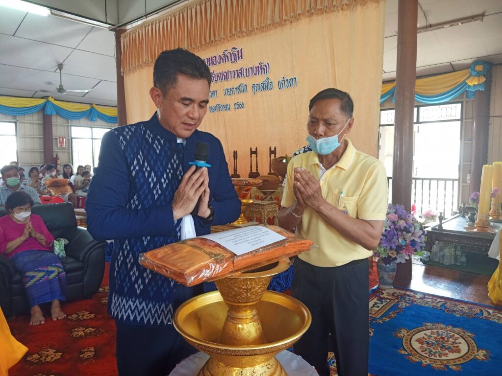 เมื่อเวลา 10.00 นาฬิกา วันอาทิตย์ที่ 5 พฤศจิกายน พ.ศ.2566 ณ วัดชลธีบุญญาวาส(วัดบางหัก) ตำบลบางหัก อำเภอพานทอง จังหวัดชลบุรี กำนันฉลอง แก้วตา สารวัตรณัฏฐ์ แก้วตา นายกฯ สนิท แก้วตา คุณสมใจ แก้วตา ประธานทอดกฐินสามัคคี ประจำปี 2566 โดยมี พระครูสุนทร กิตติธำรง เจ้าอาวาสวัดชลธีบุญฯาวาส(วัดยางหัก) ประธานพิธีสงฆ์ มี พล.ต.ท.พลศักดิ์ บรรจงศิริ นายตำรวจ ราชองครักษ์พิเศษ รัชกาลที่ 10 นายวิวัฒน์ กรมดิษฐ์ ประธานผู้บริหารบริษัทอมตะคอเปอร์เรชั่น จำกัด (มหาชน) นายวิทยา คุณปลื้ม นายกองค์การบริหารส่วนจังหวัดชลบุรี ประธานที่ปรึกษาพิเศษประธานองค์กฐิน มี นายสุพจน์ งามสง่า นายกองค์การบริหารส่วนตำบลโคกขี้หนอน อำเภอพานทอง คุณนายอรสา บรรจงศิริ อดีตกำนันอนันต์ ไม้งาม สมาชิกสภาองค์การบริหารส่วนตำบลเกาะลอยบางหัก พร้อมด้วย ผู้นำท้องถิ่น ผู้นำท้องที่ พ่อค้า นักธุรกิจ แขกผู้มีเกียรติและประชาชนร่วมงานจำนวนมาก บรรยากาศภายในงานมีความสนุกสนาน ครื้นเครง และได้มีการออกบูธจัดเลี้ยงอาหารให้กับประชาชนจำนวนมากอีกด้วย สำหรับเงินกฐินได้ยอดเงินรวมจำนวนทั้งสิ้น 1,000,999 บาท ทาง พล.ต.ท.พลศักดิ์ บรรจงศิริ ราชองครักษ์พิเศษ รัชกาลที่ 10 นายวิวัฒน์ กรมดิษฐ์ ประธานผู้บริหารบริษัทอมตะฯ กำนันฉลอง แก้วตา นายกฯสนิท แก้วตา ได้ร่วมใจกันถวายให้กับทาง พระครูสุนทร กิตติธำรง เจ้าอาวาสวัดชลธีบุญญาวาส(วัดบางหัก) เพื่อใช้ทำนุบำรุงพระพุทธศาสนาให้มีความเจริญรุ่งเรืองสืบไป