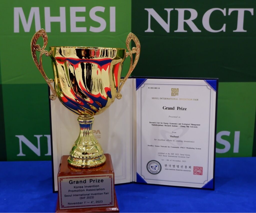นักประดิษฐ์จากมหาวิทยาลัยเชียงใหม่ สร้างความภาคภูมิและชื่อเสียงให้กับประเทศไทยในการคว้ารางวัลสูงสุด Grand Prize จากงาน “Seoul International Invention Fair 2023” (SIIIF) ที่จัดขึ้นเมื่อวันที่ 1-4 พฤศจิกายน 2566 ณ ศูนย์การประชุมและนิทรรศการ COEX สาธารณรัฐเกาหลี จากผลงานเรื่อง “เครื่องตรวจวัดคุณภาพอากาศ DustBoy” โดยทีมนักประดิษฐ์เจ้าของผลงาน ได้แก่ รองศาสตราจารย์ ดร.เศรษฐ์ สัมภัตตะกุล,ดร.รัตชยุดา กองบุญ,ดร.ภูชีวันท์ สุริยะวงศ์ และ ดร.ฮัยศัม สาแม โดยประดิษฐกรรม DustBoy เป็นระบบติดตามค่าฝุ่นละอองขนาดเล็ก PM 2.5 ด้วยเครื่องตรวจวัดมาตรฐานแบบ Low cost sensor ที่มีประสิทธิภาพสูง ที่มีการติดตั้งในภูมิภาคต่างๆของไทยทั่วประเทศ เป็นสิ่งประดิษฐ์ที่มีการรับรองมาตรฐาน พร้อมนี้ DustBoy ยังสร้างระบบเครือข่ายเฝ้าระวังและเตือนภัย PM 2.5 ที่มีประสิทธิภาพและทันสถานการณ์