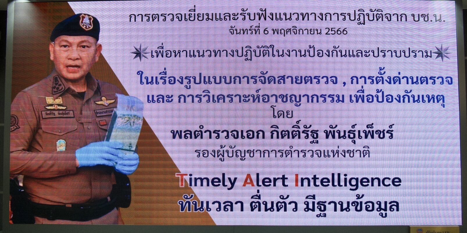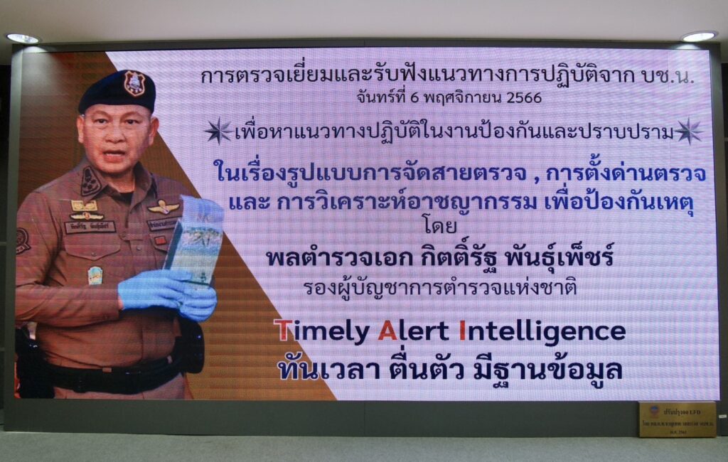 วันจันทร์ที่ 6 พ.ย.2566 เวลา 09.30 น. : พล.ต.อ.กิตติ์รัฐ พันธุ์เพ็ชร์ รอง ผบ.ตร. พร้อมด้วย พล.ต.ท.ธัชชัย ปิตะนีละบุตร ผู้ช่วย ผบ.ตร. และ พล.ต.ท.อัคราเดช พิมลศรี ผู้ช่วย ผบ.ตร. เดินทางมาตรวจเยี่ยมและรับฟังแนวทางการปฏิบัติราชการ ในสายงานป้องกันปราบปราม ของ บช.น. โดยมี พล.ต.ต.ทินกร รังมาตย์ รอง ผบช.น.,พล.ต.ต.ชรินทร์ โกพัฒน์ตา รอง ผบช.น.,ผบก.น.1-9,ผบก.สปพ.,ผบก.อก.บช.น.,ผบก.อก.บช.ส. และเจ้าหน้าที่ที่เกี่ยวข้อง เข้าร่วมประชุม ณ ห้องปารุสกวัน1/