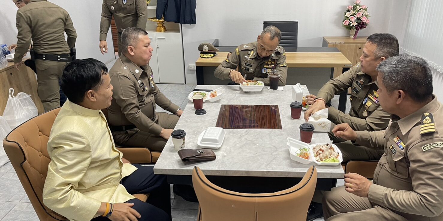 โดย ผบ.ตร. ยังได้ร่วมรับประทานอาหารกับเจ้าหน้าที่ด่านตรวจคนเข้าเมืองเชียงแสน อย่างเรียบง่าย เพื่อพูดคุย สอบถามสภาพปัญหา ข้อขัดข้อง ในการทำงาน และอยากทราบข้อเสนอแนะเพื่อนำไปพิจารณาจัดสรรสวัสดิการ เสริมสร้างขวัญกำลังใจของพี่น้องข้าราชการตำรวจและครอบครัว