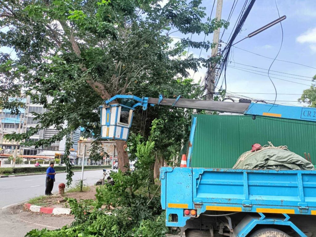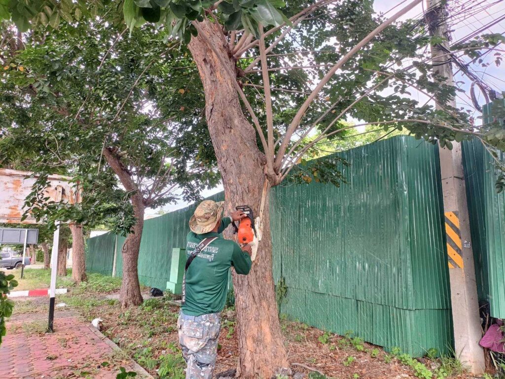 นายจำเริญ สละชีพ นายกเทศมนตรีเมืองลพบุรี ได้สั่งการให้เจ้าหน้าที่งานสวนสาธารณะ สำนักช่าง เทศบาลเมืองลพบุรี นำอุปกรณ์ไปตัดต้นไม้ใหญ่ที่ยืนต้นตาย ภายในเขตเทศบาลเมืองลพบุรี เพื่อมิให้หักโค่นเป็นอันตรายต่อประชาชน บ้านพักอาศัย หรือกีดขวางการจราจร