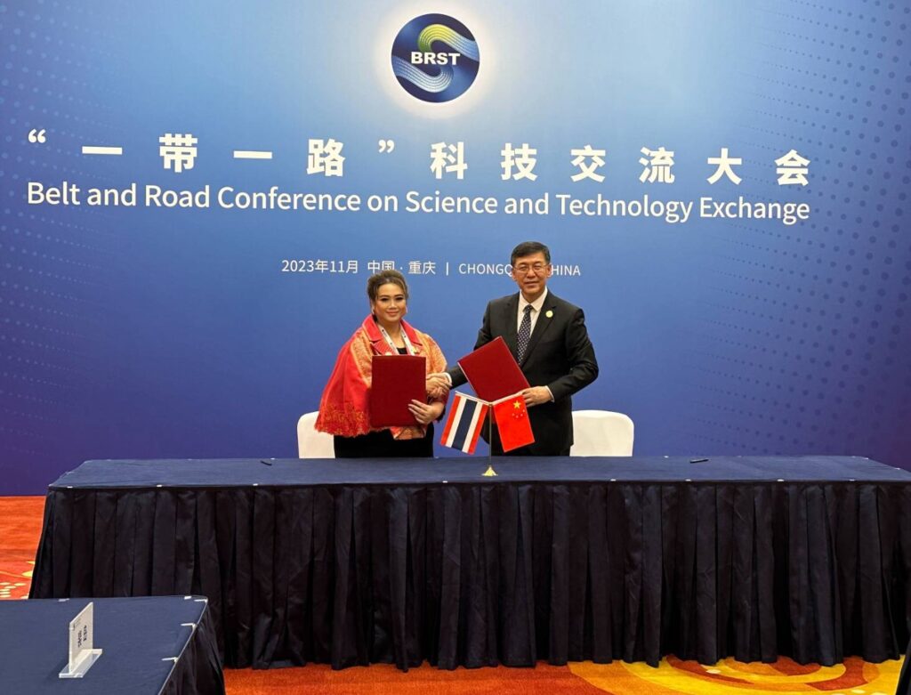 วันที่ 8 พ.ย.2566 : น.ส.ศุภมาส อิศรภักดี รมว.การอุดมศึกษา วิทยาศาสตร์ วิจัยและนวัตกรรม (อว.) เปิดเผยว่า ในระหว่างการประชุม Belt and Road Conference on Science and Technology Exchange ครั้งที่ 1 ณ นครฉงชิ่ง สาธารณรัฐประชาชนจีน ตนได้ประชุมทวิภาคีไทย – จีนร่วมกับ นายหยิน เหอจวิ้น รมว.วิทยาศาสตร์และเทคโนโลยีของจีน และมีการลงนามใน “บันทึกความเข้าใจว่าด้วยโครงการแลกเปลี่ยนวิทยาศาสตร์และเทคโนโลยีในภาคประชาชน ระหว่างกระทรวงการอุดมศึกษา วิทยาศาสตร์ วิจัยและนวัตกรรมแห่งราชอาณาจักรไทย และกระทรวงวิทยาศาสตร์และเทคโนโลยีแห่งสาธารณรัฐประชาชนจีน” (Memorandum of Understanding on Science and Technology People-to-People Exchange Program) เพื่อส่งเสริมความสัมพันธ์ระหว่างทั้งสองประเทศ สร้างความเข้าใจและความไว้วางใจซึ่งกันและกันระหว่างนักวิจัย นักวิทยาศาสตร์ และสถาบันวิจัยของทั้งสองประเทศซึ่งจะเป็นการช่วยกระชับความร่วมมือทวิภาคีในด้านวิทยาศาสตร์ เทคโนโลยี และนวัตกรรม ให้มีความเข้มแข็งยิ่งขึ้น โดยมีหน่วยบริหารและจัดการทุนด้านการพัฒนากำลังคนและทุนด้านการพัฒนาสถาบันอุดมศึกษา การวิจัยและการสร้างนวัตกรรม (บพค.) ของกระทรวง (อว.) และศูนย์แลกเปลี่ยนวิทยาศาสตร์และเทคโนโลยีแห่งประเทศจีน (China Science and Technology Exchange Center – CSTEC) กระทรวงวิทยาศาสตร์และเทคโนโลยีของจีน ได้รับมอบหมายให้เป็นคณะทำงานร่วมภายใต้บันทึกความเข้าใจฉบับนี้