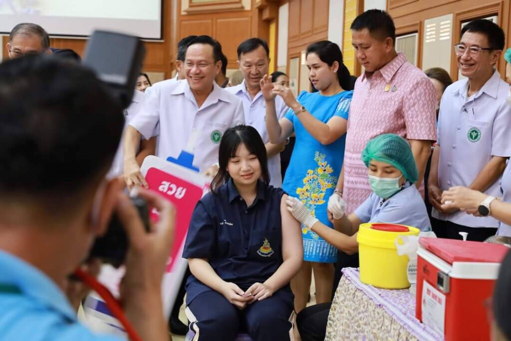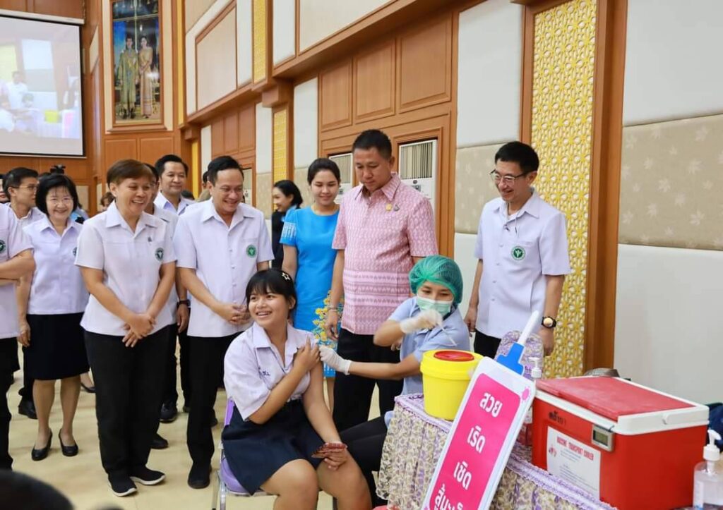 เมื่อวันที่ 8 พฤศจิกายน 2566 เวลา 14.00 น. นายธวัชชัย ศรีทอง ผู้ว่าราชการจังหวัดชลบุรี เป็นประธาน เปิดกิจกรรม kick off ฉีดวัคซีนป้องกันการติดเชื้อไวรัสเอชพีวีสร้างเสริมภูมิคุ้มกัน ลดป่วย ลดตายจากมะเร็งปากมดลูก ที่โรงเรียนชลกันยานุกูล อำเภอเมืองชลบุรี จังหวัดชลบุรี ซึ่งเป็นการจัดกิจกรรม Kick off พร้อมกันทั่วประเทศ