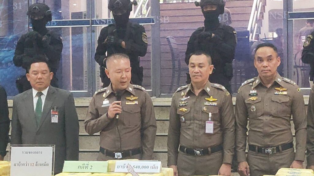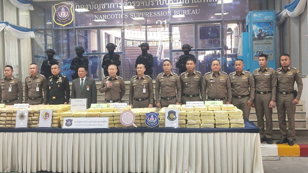 วันที่ 9 พ.ย.2566 เวลา 10.00 น. พล.ต.ท.คีรีศักดิ์ ตันตินวะชัย รรท.ผบช.ปส. เป็นประธานแถลงผลการปราบปรามเครือข่ายยาเสพติด พร้อมด้วย พล.ต.ต.สมเกียรติ วัฒนพรมงคล,พล.ต.ต.สมบูรณ์ เทียนขาว,พล.ต.ต.ออมสิน ตรารุ่งเรือง,พล.ต.ต.พลัฎฐ์ วิเศษสิงห์ รรท.รอง ผบช.ปส.,พล.ต.ต. พรศักดิ์ สุรสิทธิ์ ผบก.ปส.4,พล.ต.ต. ธนรัชน์ สอนกล้า ผบก.ปส.2,พ.ต.อ.อดิศ เจริญสวัสดิ์ รรท.ผบก.ปส.3,พ.ต.อ.วิทัศน์ บริรักษ์ รรท.ผบก.สกส. และ พ.ต.อ.อิทธิพล จันทร์ศรีบุตร รรท.ผบก.ขส. ซึ่ง