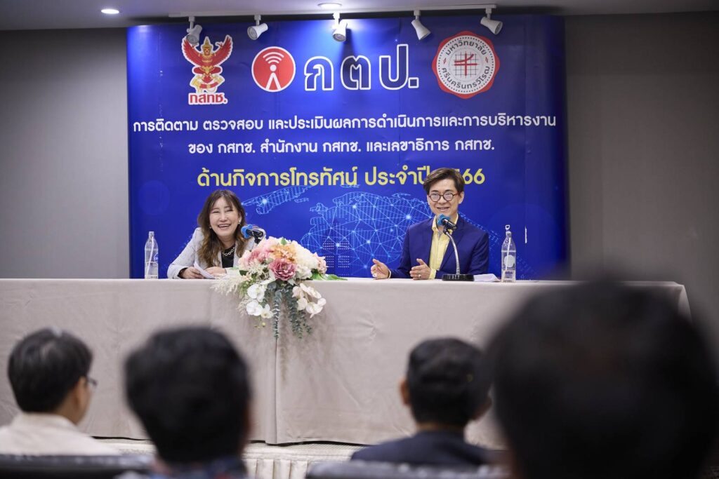 วันที่ 9 พฤศจิกายน 2566 คณะกรรมการติดตามและประเมินผลการปฏิบัติงาน (กตป.) ร่วมกับ มหาวิทยาลัยศรีนครินทร วิโรฒ (มศว.) นำเสนอผลการศึกษาการติดตาม ตรวจสอบ และประเมินผลการดำเนินการและการบริหารงานของ (กสทช.) สำนักงาน (กสทช.) และเลขาธิการ (กสทช.) ด้านกิจการโทรทัศน์ ประจำปี 2566 และจัดงานเสวนาวิชาการหัวข้อ “ทิศทางการดำเนินงานของกิจการโทรทัศน์ของประเทศไทย” เพื่อการส่งเสริมให้เกิดการดำเนินงานภายใต้กิจการโทรทัศน์ ในประเทศไทย ทั้งในปัจจุบัน และการส่งเสริมให้เกิดความยั่งยืนในอนาคต ณ โรงแรมเซ็นจูรี่ พาร์ค กรุงเทพมหานคร
