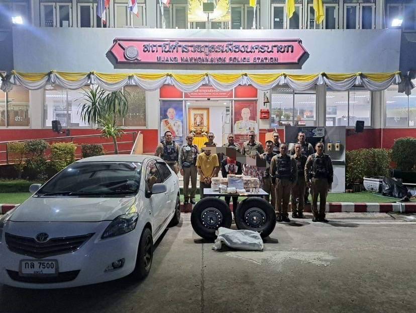 พล.ต.ท.สมประสงค์กล่าวอีกว่า สภ.เมืองนครนายก จับกุมเครือข่ายลำเลียงยาเสพติดผ่านไทยไปปลายทางประเทศกัมพูชา สืบเนื่องจากเมื่อวันที่ 8 พ.ย.เจ้าหน้าที่ตำรวจ สภ.เมืองนครนายก ตั้งจุดตรวจจุดสกัด บริเวณแยกสามสาว ม.1 ต.ท่าช้าง อ.เมือง จ.นครนายก พบรถยนต์ของผู้ต้องหาในคดีนี้ขับเข้ามาบริเวณจุดตรวจ พฤติการณ์มีพิรุธต้องสงสัยว่าจะมีสิ่งผิดกฎหมาย เจ้าหน้าที่ตำรวจจึงแสดงตัวและเข้าทำการตรวจค้น พบยาไอซ์ 42 กิโลกรัม ซุกซ่อนในกระโปรงหลังรถ และในยางอะไหล่ จึงจับกุมตัวผู้ต้องหาพร้อมพวก 3 ราย พร้อมของกลางนำส่งพนักงานสอบสวนดำเนินคดีตามกฎหมายต่อไป.