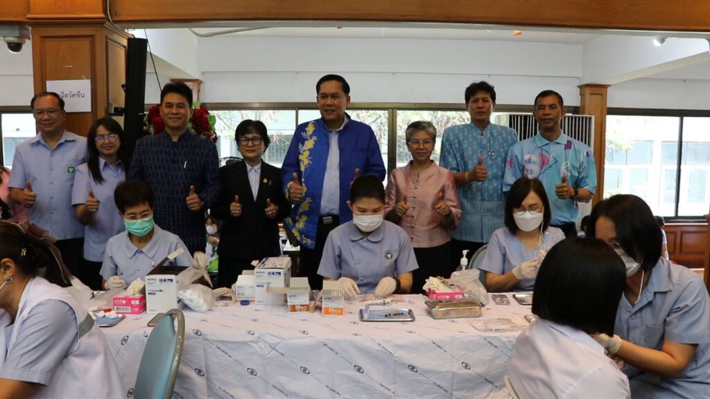 สำหรับวันนี้ได้จัดกิจกรรมฯเพื่อสร้างกระแสในรณรงค์การป้องกันโรคมะเร็งปากมดลูก ซึ่งโรคมะเร็งปากมดลูกเป็นโรคมะเร็งที่พบมากเป็นอันดับ 2 ในหญิงไทย รองมาจากมะเร็งเต้านม สาเหตุเกิดจากการติดเชื้อไวรัส Human Papilloma virus หรือเชื้อไวรัส HPV ที่เนื้อเยื่อบุผิว ปากมดลูก ทำให้เชลล์บริเวณปากมดลูกเจริญผิดปกติ และก่อให้เกิดมะเร็งปากมดลูก ปัจจุบันโรคมะเร็งปากมดลูกสามารถป้องกันได้ ด้วยการฉีดวัคซีนป้องกันมะเร็งปากมดลูกซึ่งกลุ่มเป้าหมายเป็นนักเรียนหญิงในระบบการศึกษา จำนวน 500 คน เข้ารับการฉีดวัคซีนเพื่อสร้างเสริมภูมิคุ้มกันต่อไวรัส HPV โดยมุ่งหวังผลในการลดการเจ็บป่วยและเสียชีวิตด้วยมะเร็งปากมดลูกในหญิงไทย