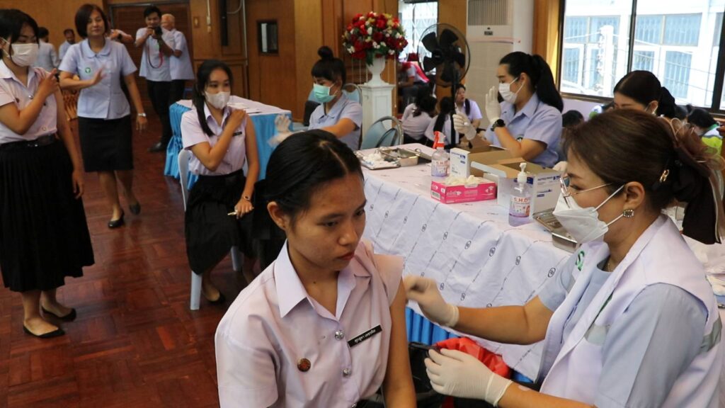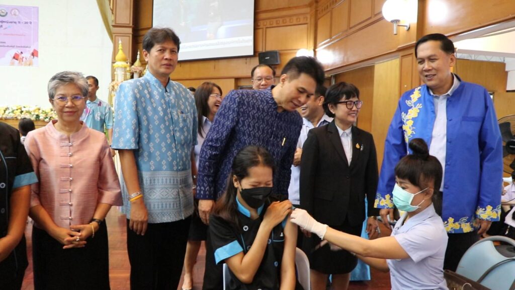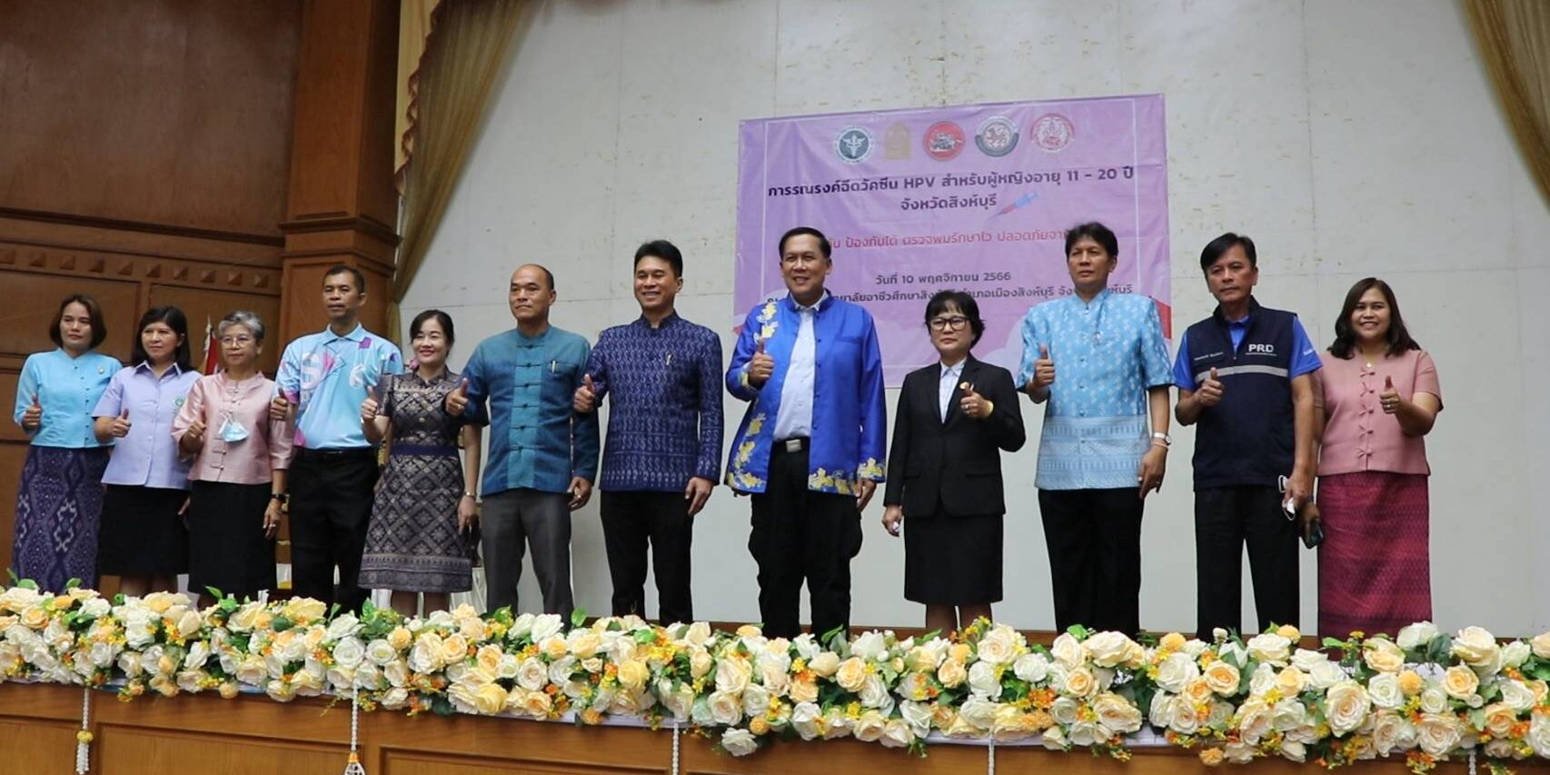 วันที่ 10 พฤศจิกายน 2566 เวลา 09.30 น.ณ หอประชุมวิทยาลัยอาชีวสิงห์บุรี นายวราดิศร อ่อนนุช รองผู้ว่าราชการจังหวัดสิงห์บุรี รักษาราชการแทนผู้ว่าราชการจังหวัดสิงห์บุรี เปิดกิจกรรมการรณรงค์ฉีดวัคซีนป้องกันการติดเชื้อไวรัสเอชพีวี (HPV) จังหวัดสิงห์บุรี โดยมี นายแพทย์โชคชัย สาครพานิช นายแพทย์สาธารณสุขจังหวัดสิงห์บุรี จัดกิจกรรมรณรงค์ฉีดวัคซีน ป้องกันการติดเชื้อไวรัสเอชพีวี ตามนโยบายเร่งรัด 100 วันของกระทรวงสาธารณสุข “Save Our School Children by 1 Million HPV Vaccines” ในกลุ่มหญิงไทย อายุ 11-20 ปี