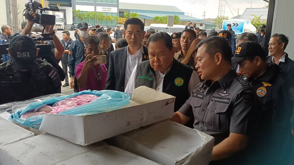 การเข้าตรวจค้นครั้งนี้เป็นการขยายผล จากการเข้าตรวจค้นบริษัทชิปปิ้งที่นำเข้าเนื้อหมูเถื่อนผิดกฎหมาย ซึ่งครั้งนั้นสามารถตรวจยึดของกลางเป็นเนื้อหมูเถื่อนได้ประมาณ 200 กิโลกรัม และเชื่อว่าบริษัท ชิปปิ้งรายดังกล่าวน่าจะนำเนื้อหมูอีกหลายสิบตันมาซุกซ่อนอยู่ที่โกดังห้องเย็นใน จ.สมุทรสาคร จึงนำมาสู่การสืบสวนสอบสวนขยายผลและเข้าตรวจสอบข้อเท็จจริงที่ห้องเย็นดังกล่าว เบื้องต้นมีข้อมูลว่าพบเนื้อสัตว์มากกว่า 70 ตัน ถูกแช่เก็บอยู่ภายในห้องเย็นแห่งนี้